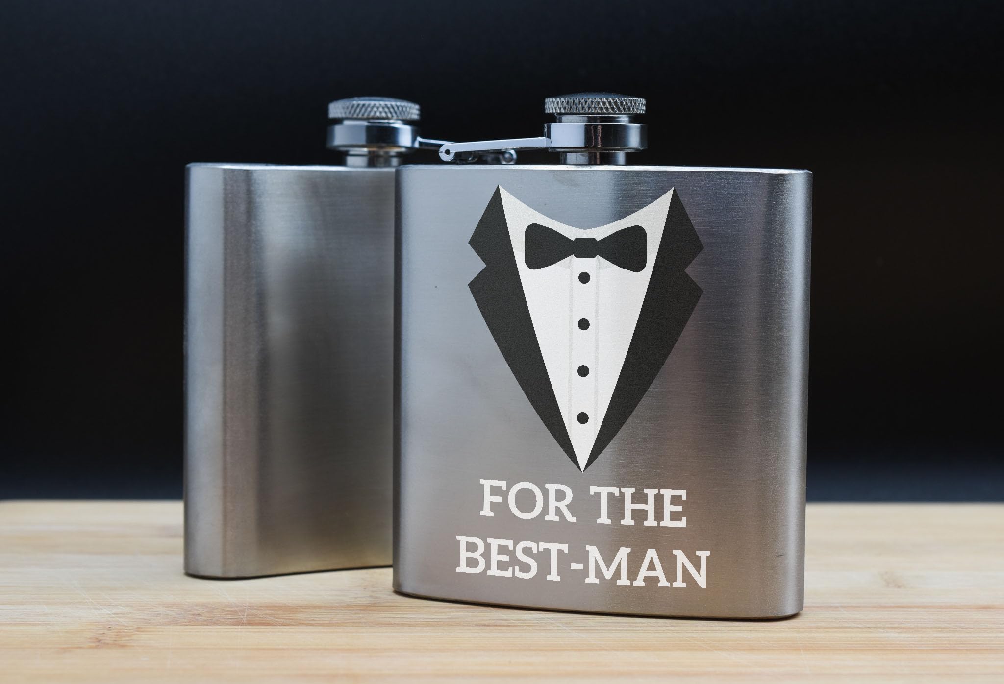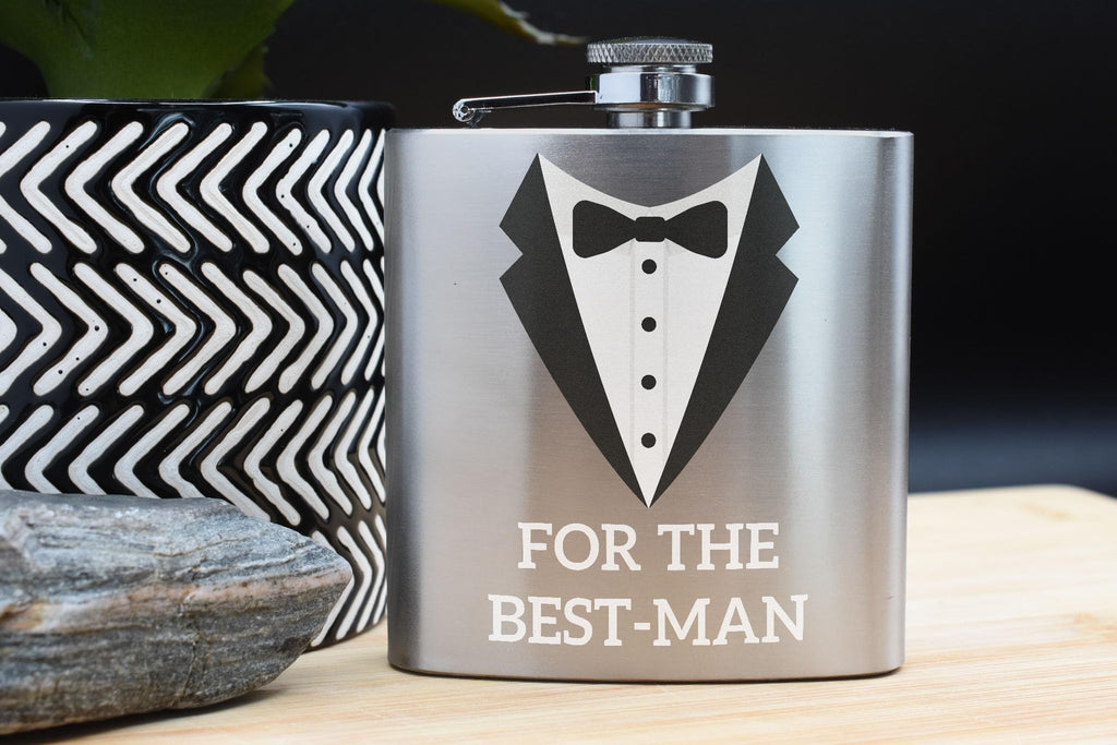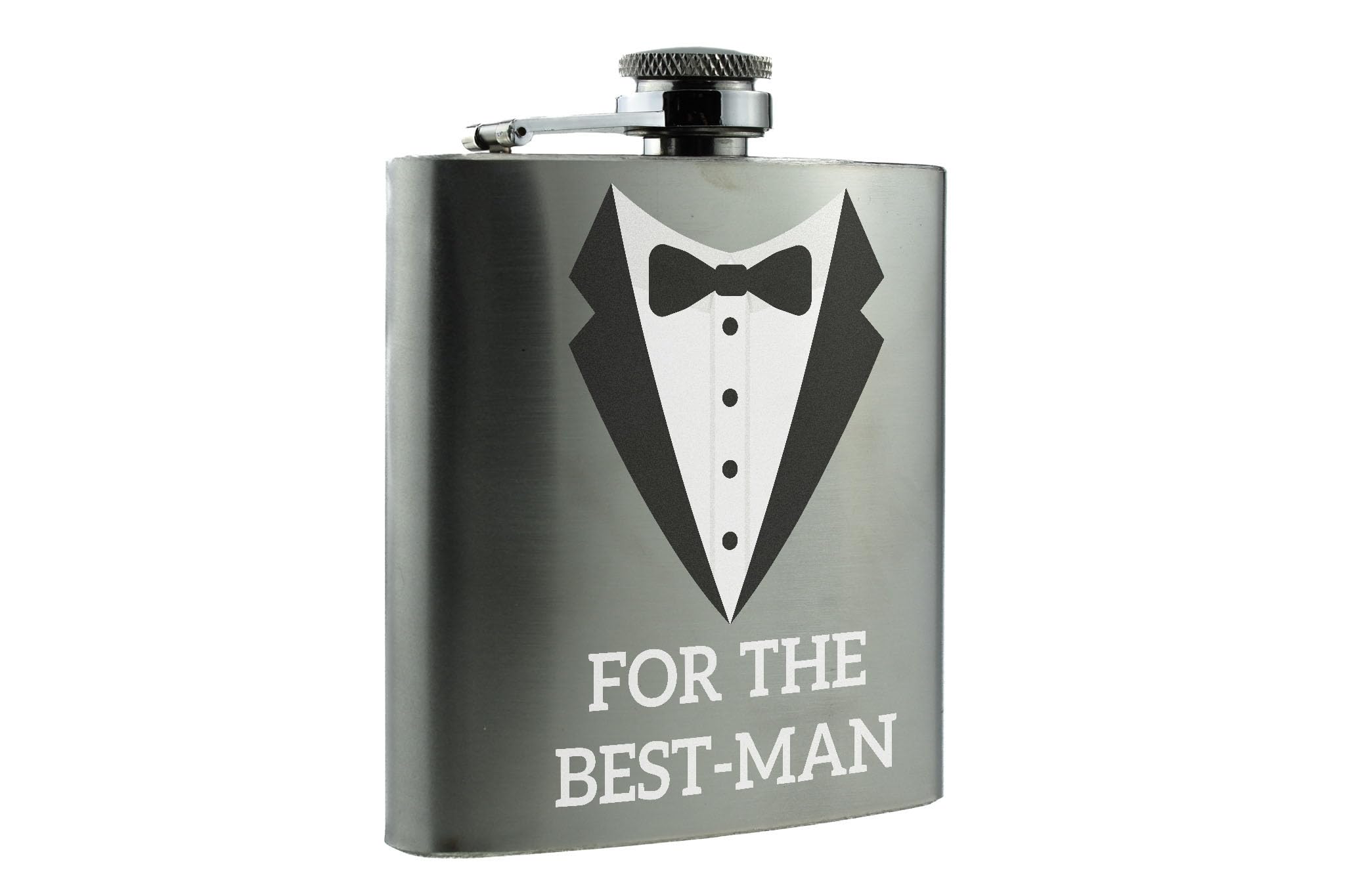 • Best Man Gift featuring a stylish Tuxedo Design Flask