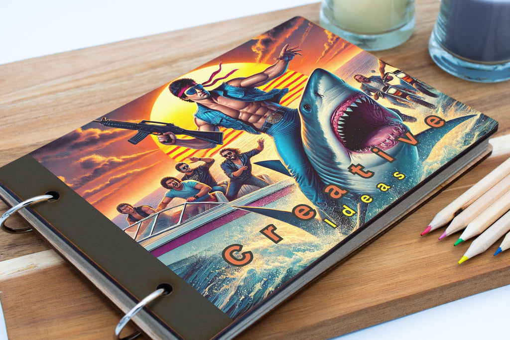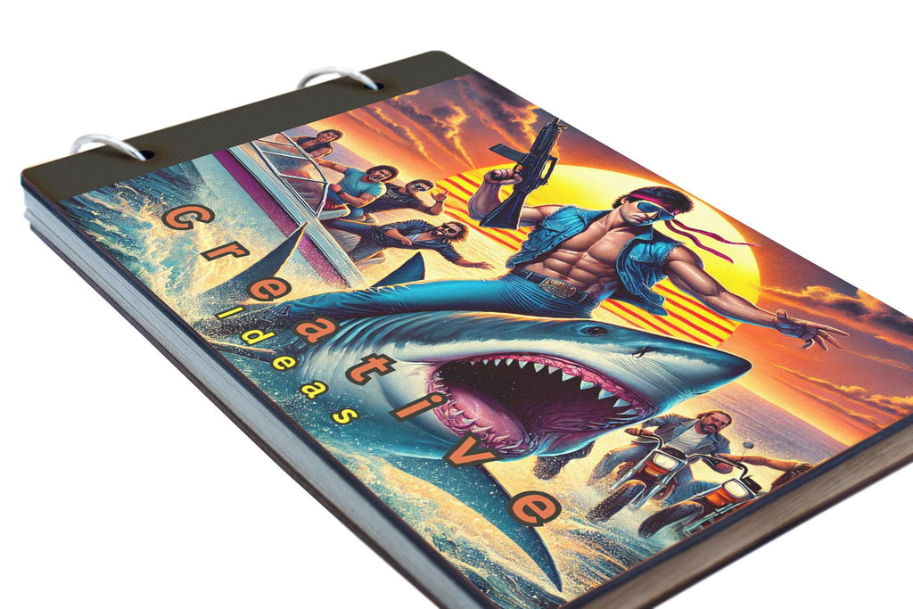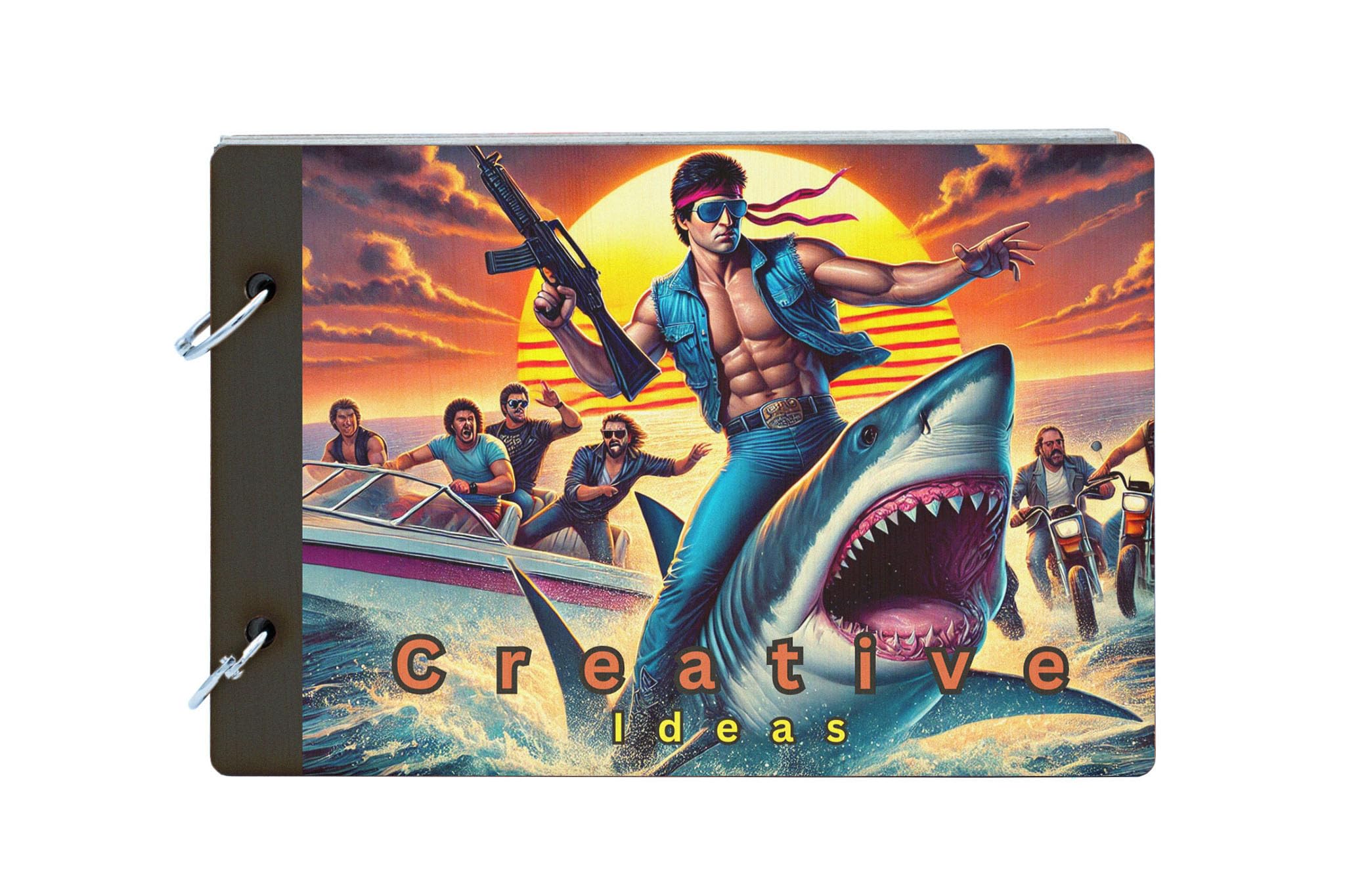 Embark on a thrilling journey back to the 80s with 'Sully Sharkrider: 80s Action Adventure with Vibrant Retro Aesthetics'. The dynamic illustrations and retro cool style transport you to a time of speedboat escapes and motorcycle chases, set against a stunning sunset backdrop. The full-colour front cover showcases Sully Sharkrider, the greatest hero of all time, ready to take on any challenge. With 25 blank recycled pages to fill with all of your creative ideas.