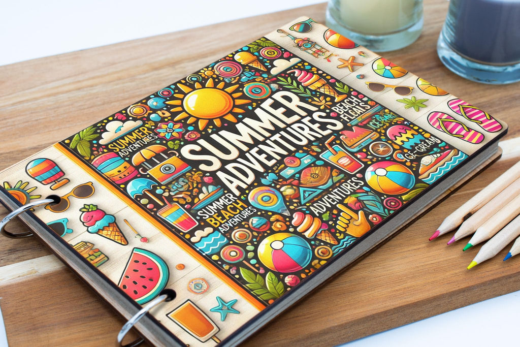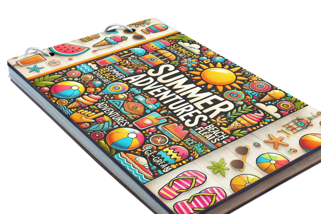 Capture all your summer adventures and memories in this beautifully crafted keepsake journal. The Summer Adventures Keepsake Journal is perfect for documenting all the fun and excitement of your summer vacations. The wooden cover features a full colour front cover showing bright and colourful cartoon style summer images such as palm trees, watermelon, ice cream, sunglasses, and flip-flops. The journal contains 25 recycled pages, providing plenty of space for you to write about your adventures in the sunshine. Whether you're spending time at the beach, travelling to new and exciting destinations, or simply enjoying the summer vibes, this journal is the ideal companion to help you remember all the special moments of your summer.