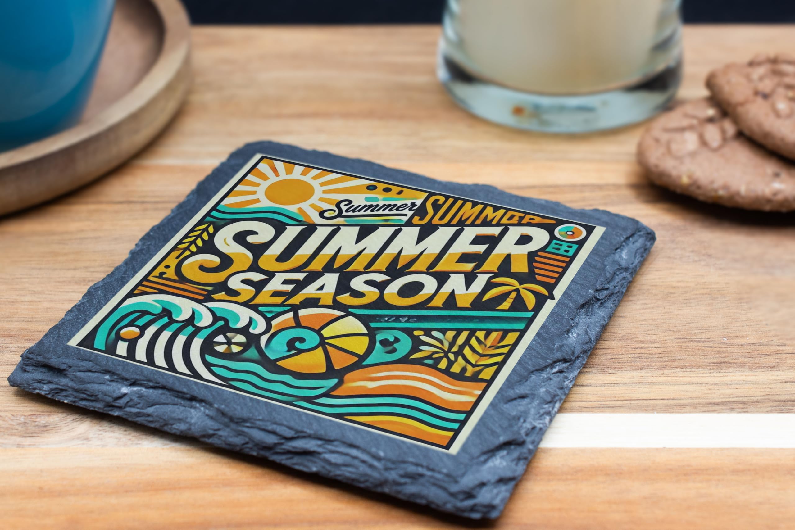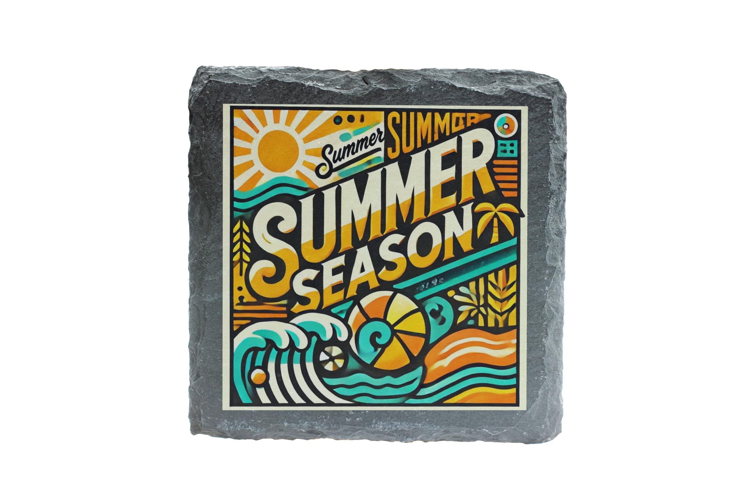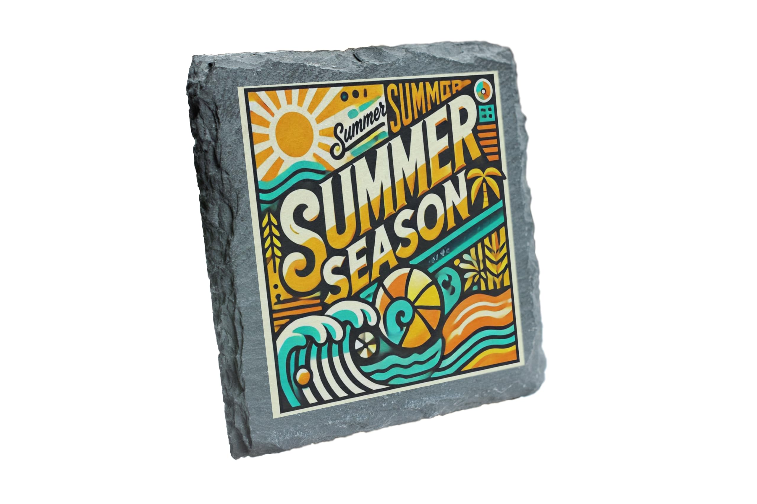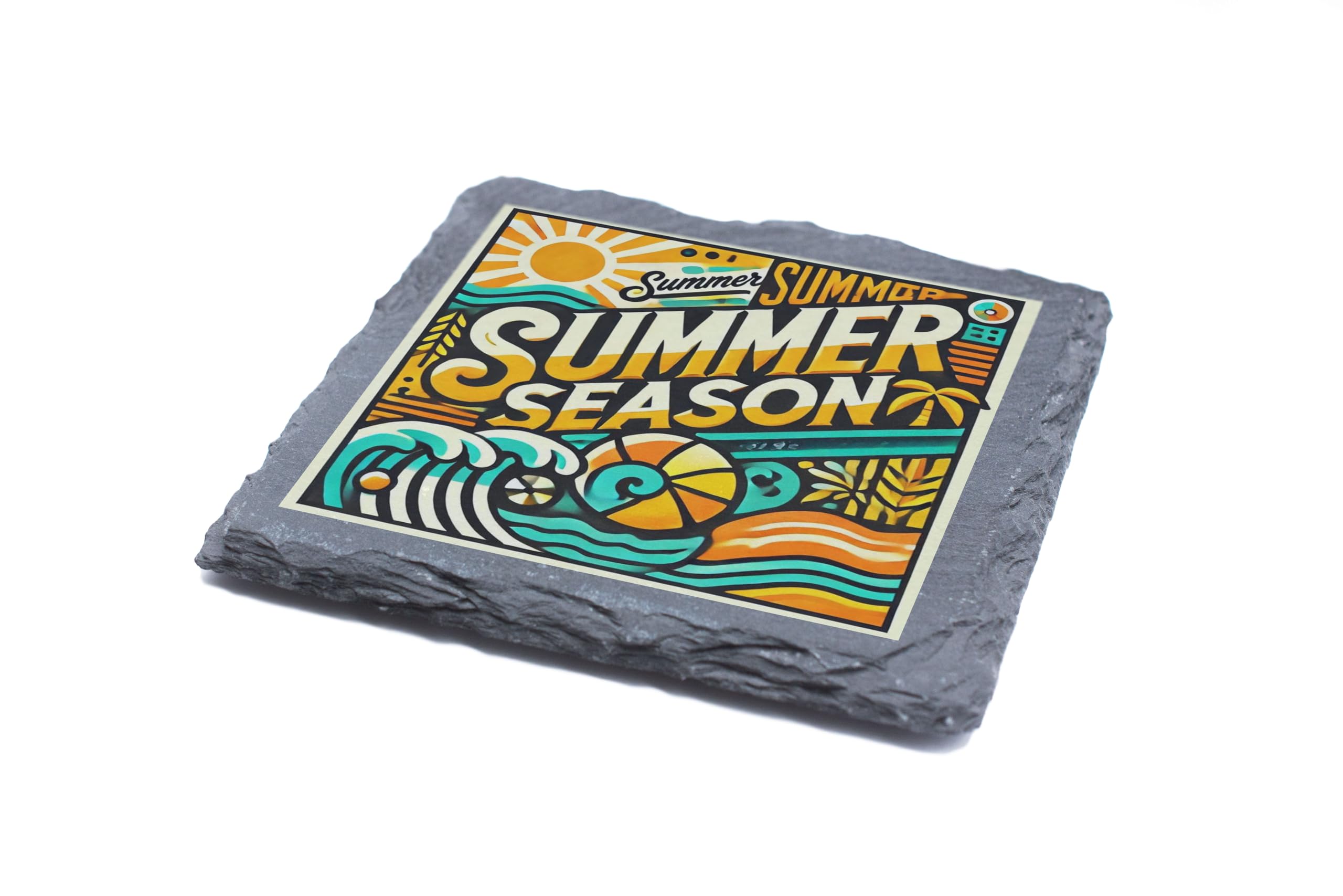 'Summer Season' Slate Coaster | Vibrant Beach Theme | Coastal D?cor (slco-ds24-seasonrg)