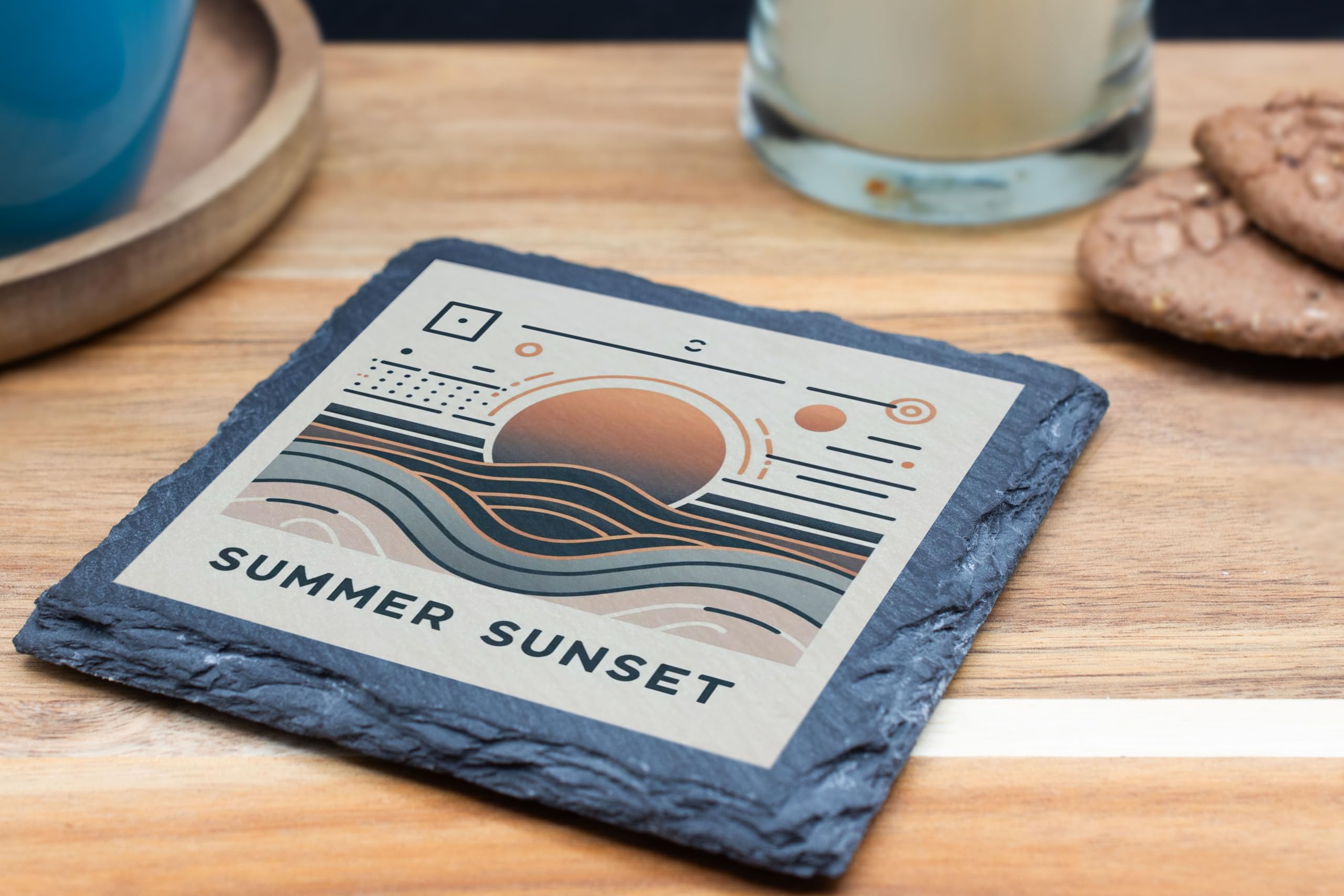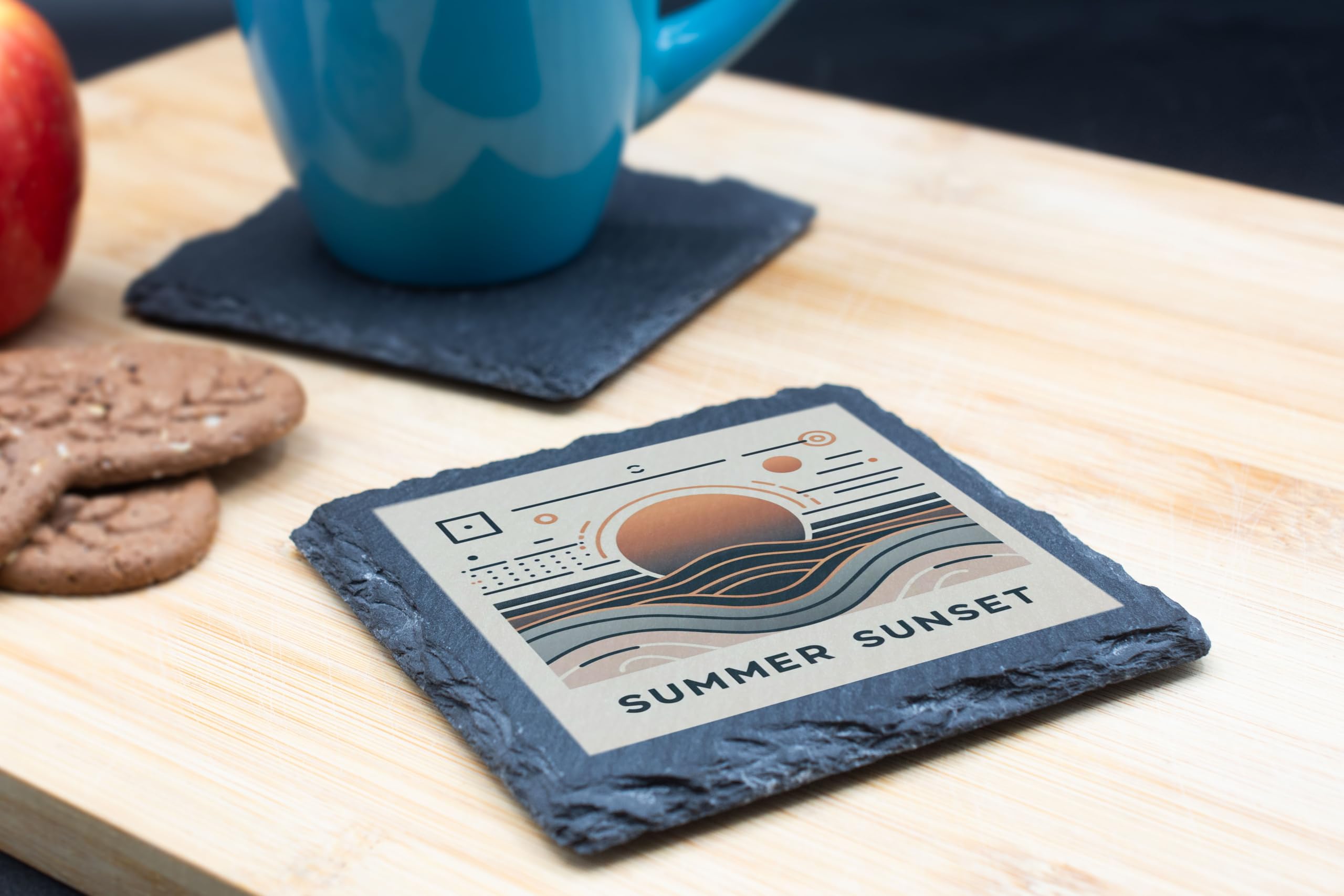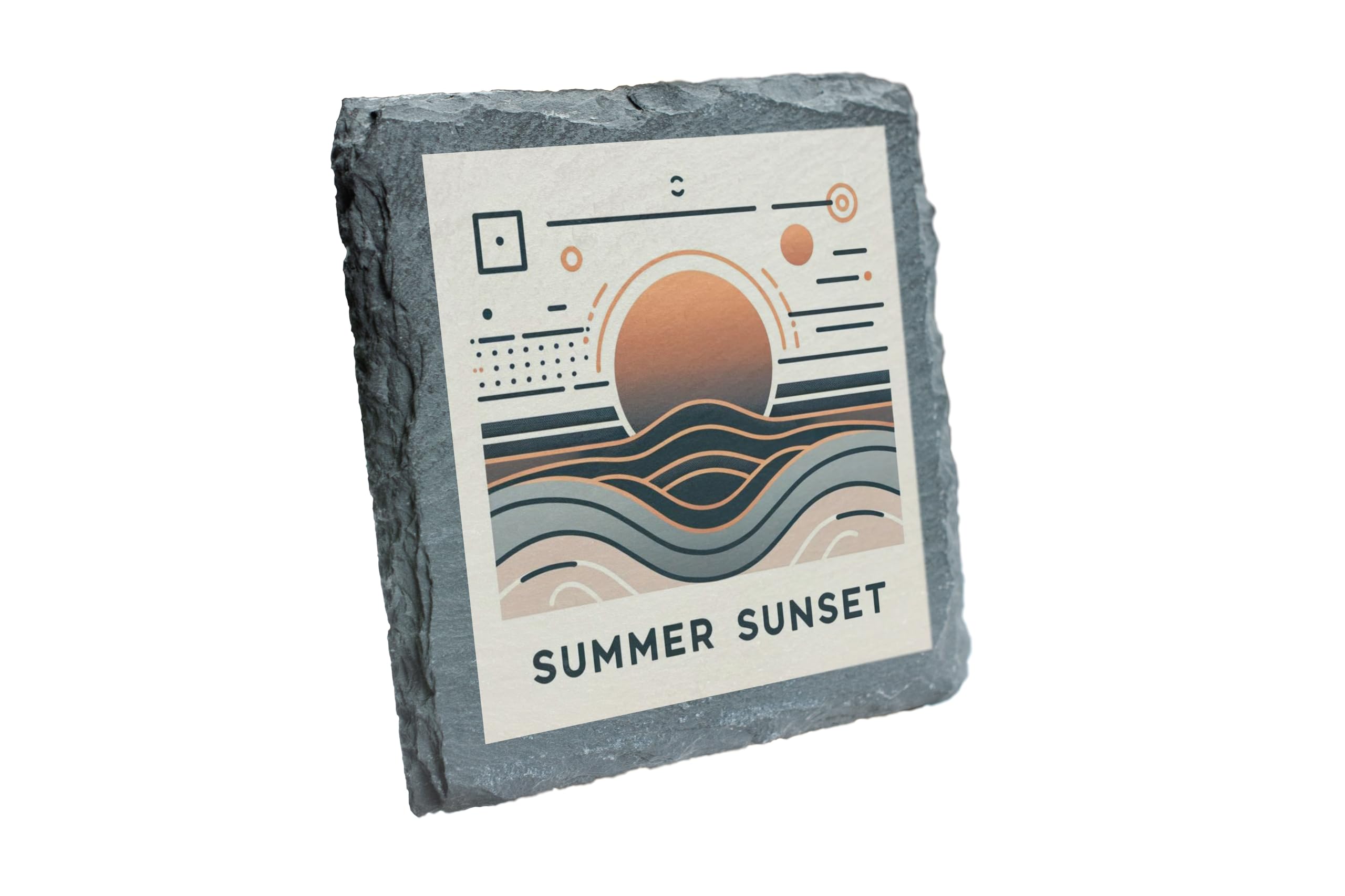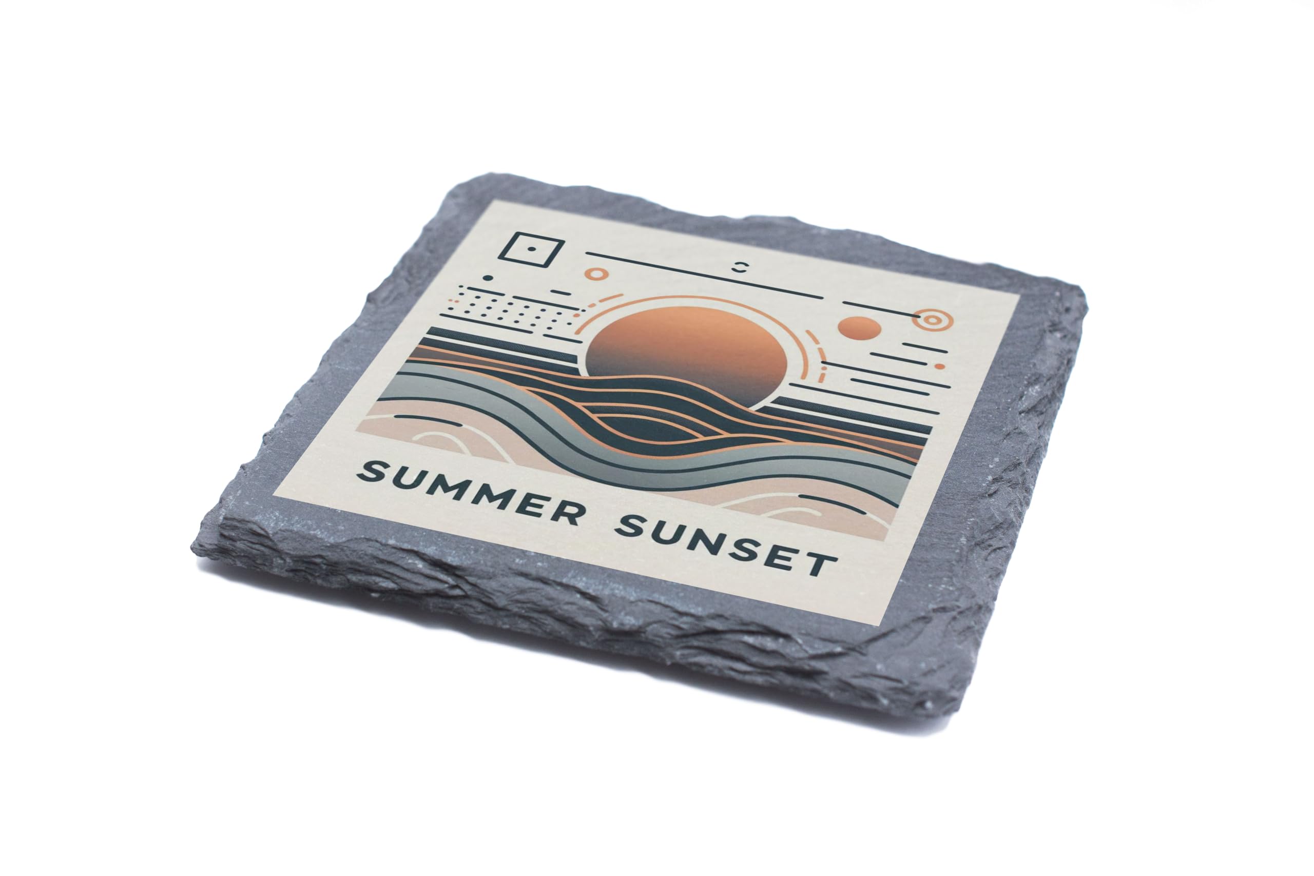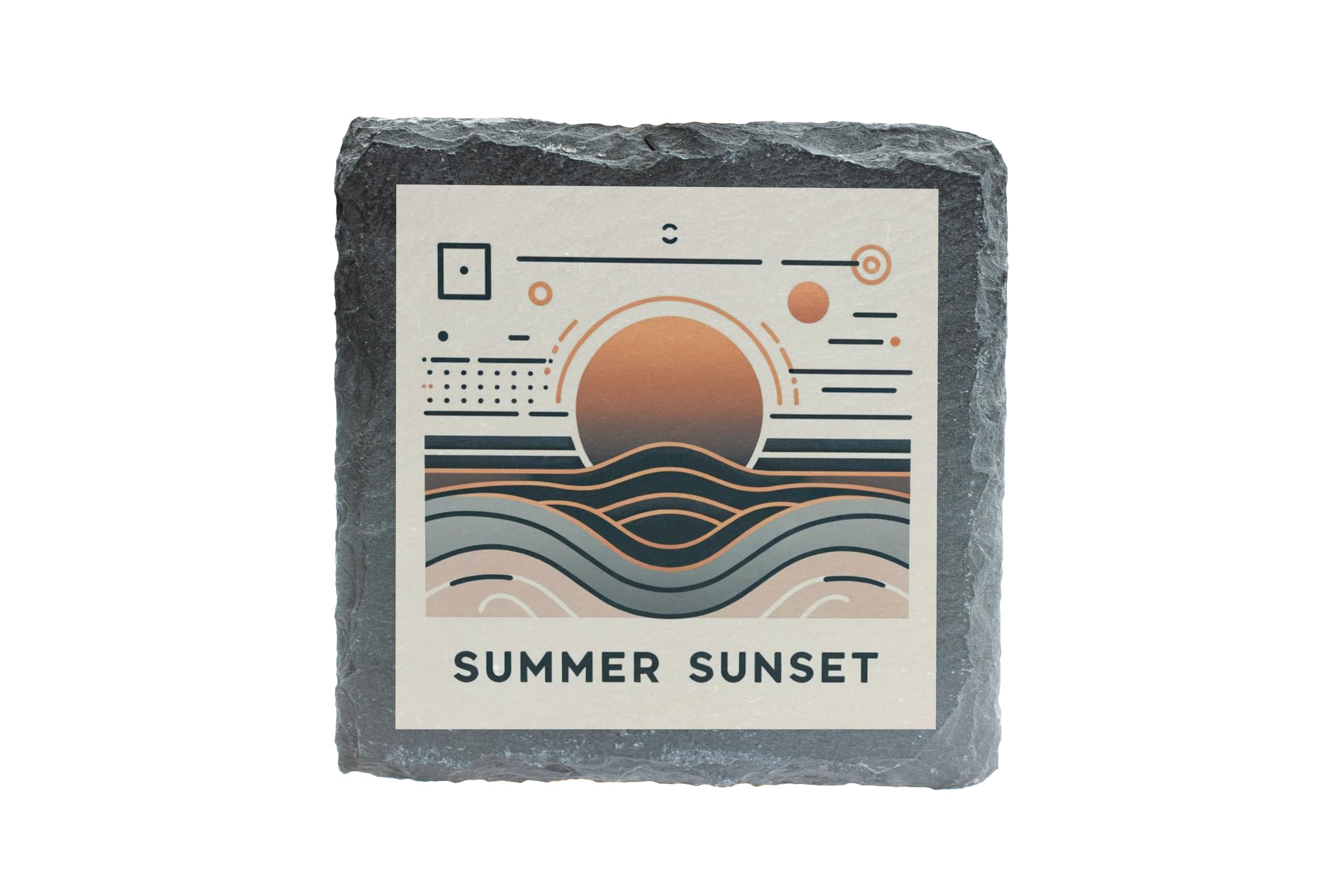 Elevate your drinkware collection with this "Summer Sunset" abstract slate coaster. Its artistic design captures the beauty of a sunset with geometric patterns and soft hues, making it a striking addition to any modern space. Made from natural slate, this coaster combines durability with timeless style. Its rugged edges add a touch of rustic charm, while its functionality ensures your surfaces stay clean and protected. Whether used for morning coffee or evening cocktails, this coaster brings a subtle elegance to your setting. A perfect gift for art lovers and d?cor enthusiasts, it blends seamlessly into any space.