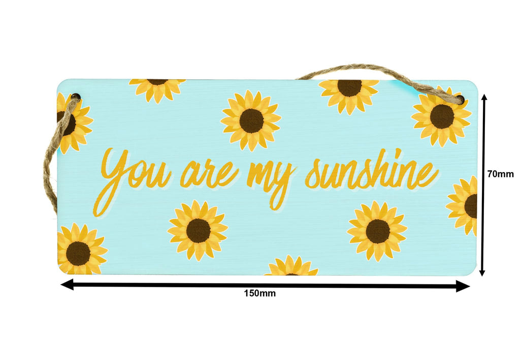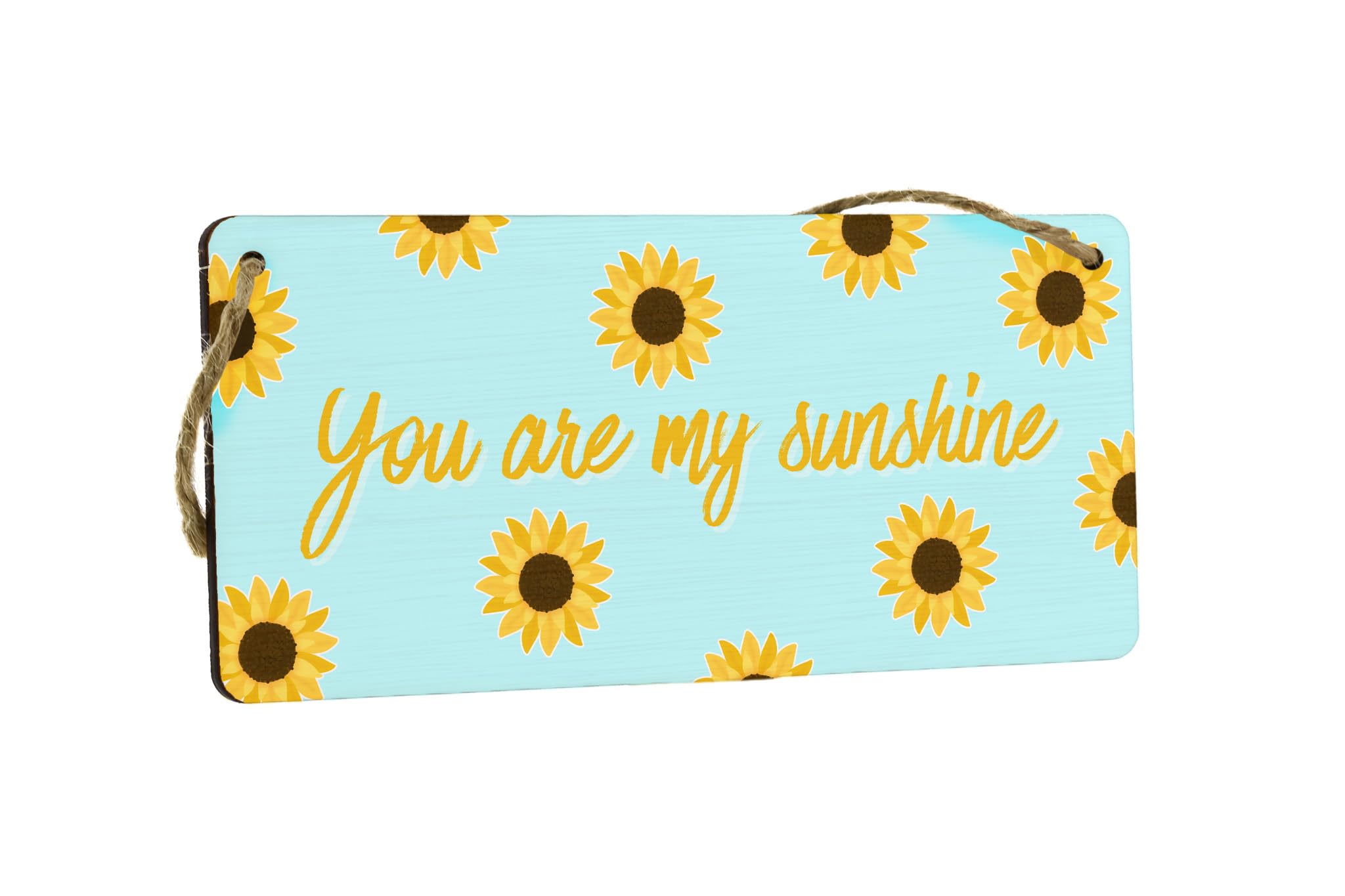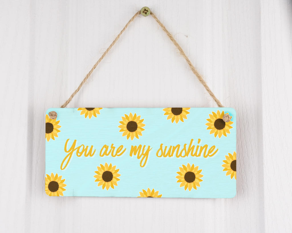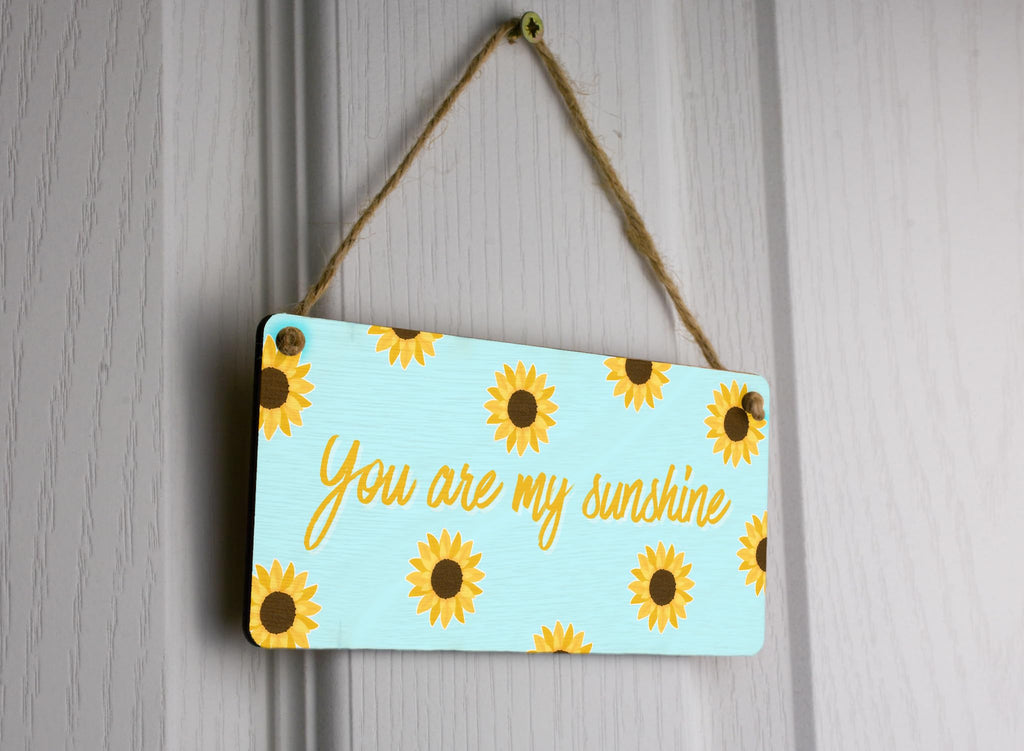 Introducing the Sunflower: Inspirational Plywood Hanging Sign - 'You Are My Sunshine' - Full Colour Home D?cor. This adorable wooden wall sign is made from high-quality plywood and features a captivating sunflower design. Hang it in your home or nursery to add a touch of warmth and positivity. The sign reads 'You Are My Sunshine', reminding you of the joy and love in your life. Its full-colour design beautifully showcases the vibrant sunflower, creating a striking visual appeal. This inspirational wood sign is perfect for those who appreciate heart-warming art and want to add a cute wall hanging to their d?cor. Get ready to transform your space with this sunflower home d?cor piece that radiates happiness and charm.