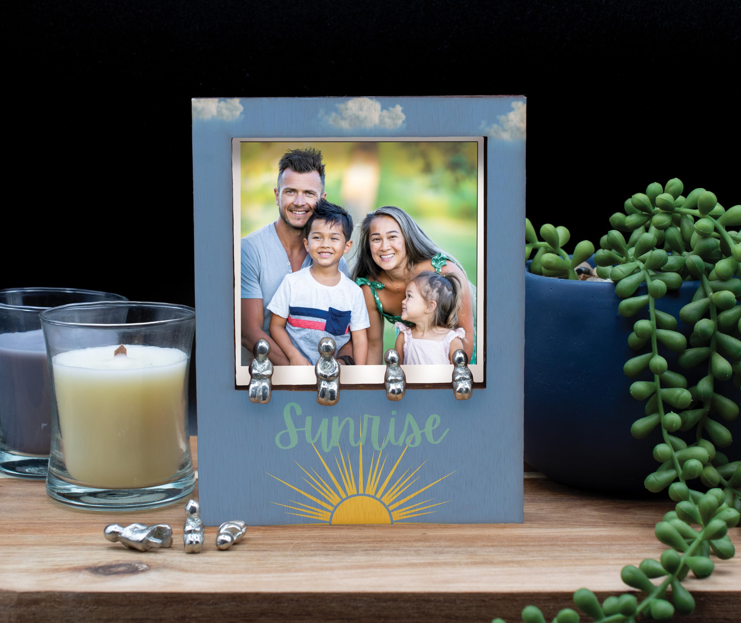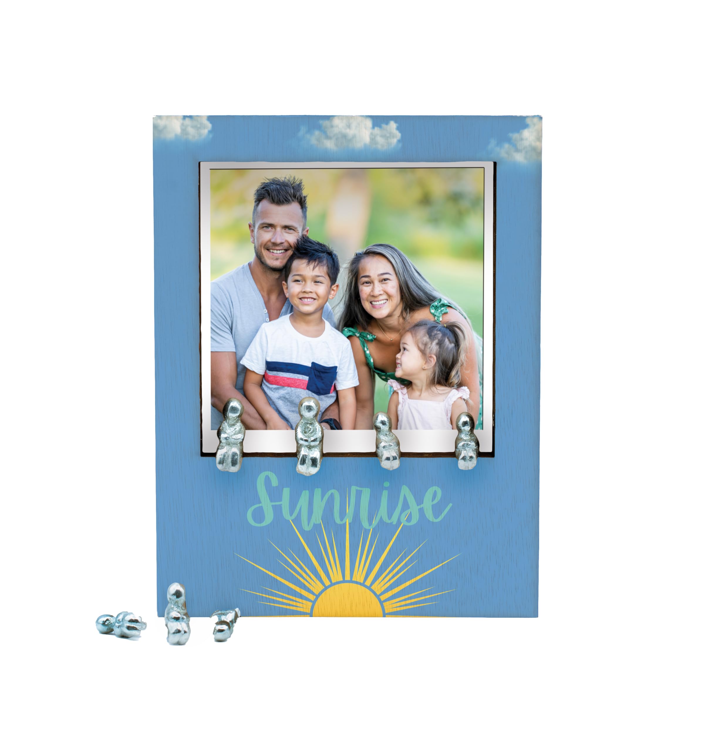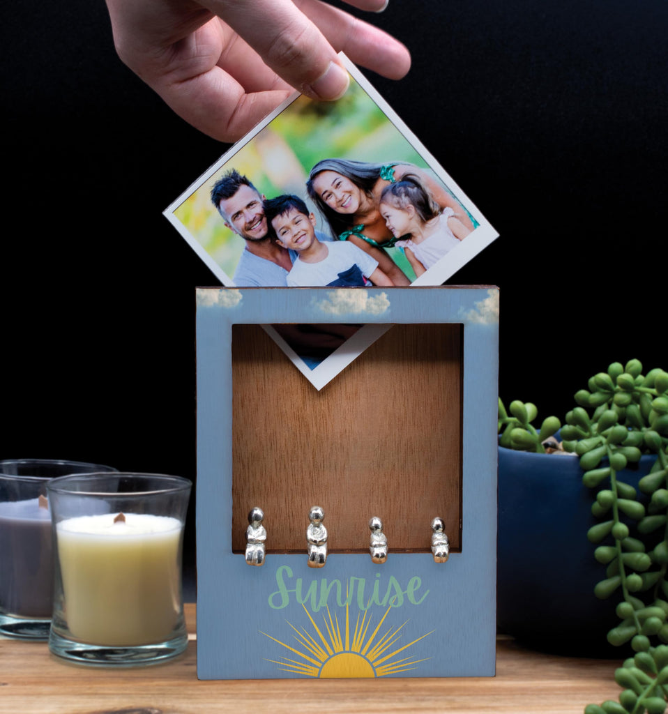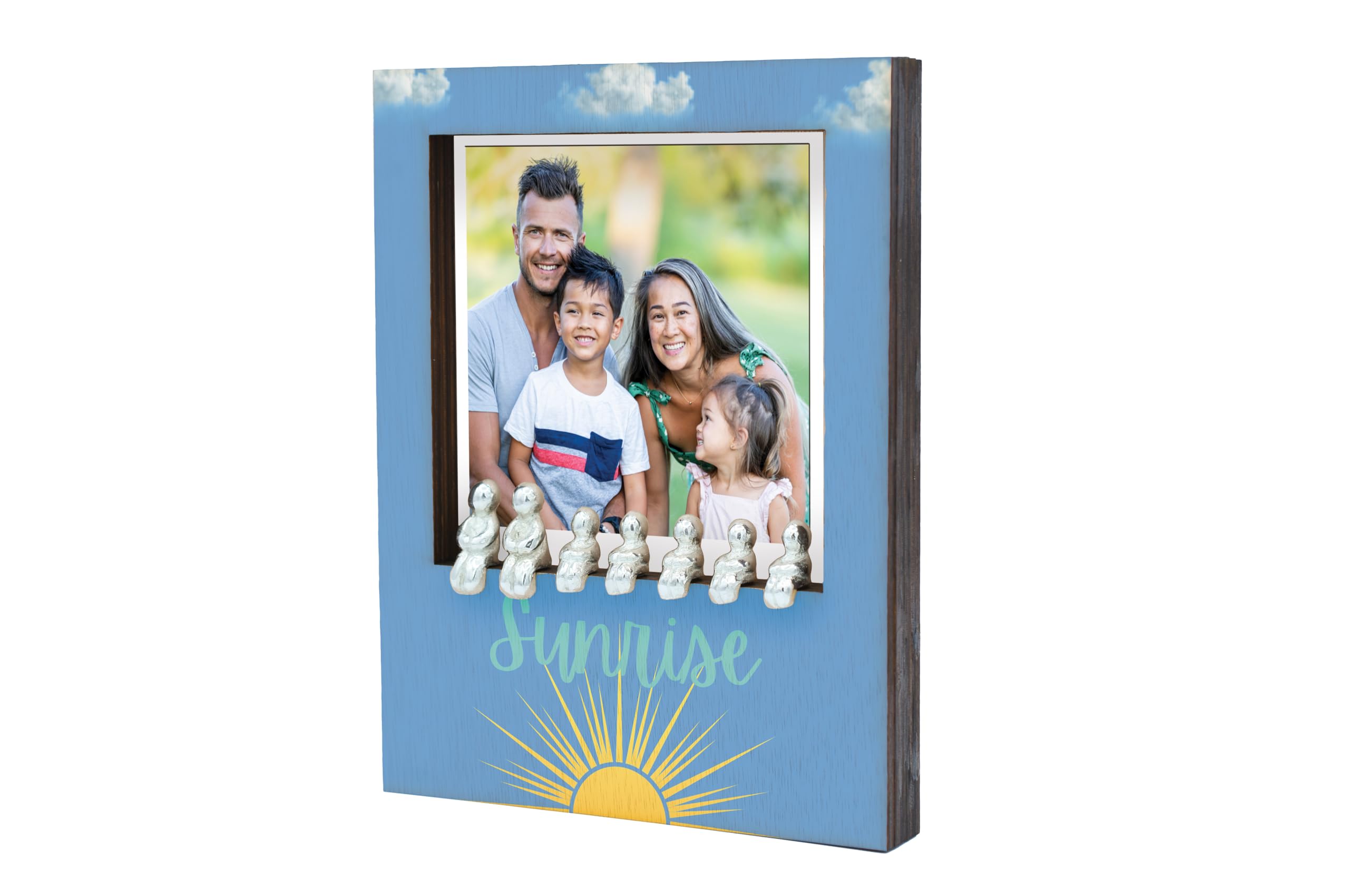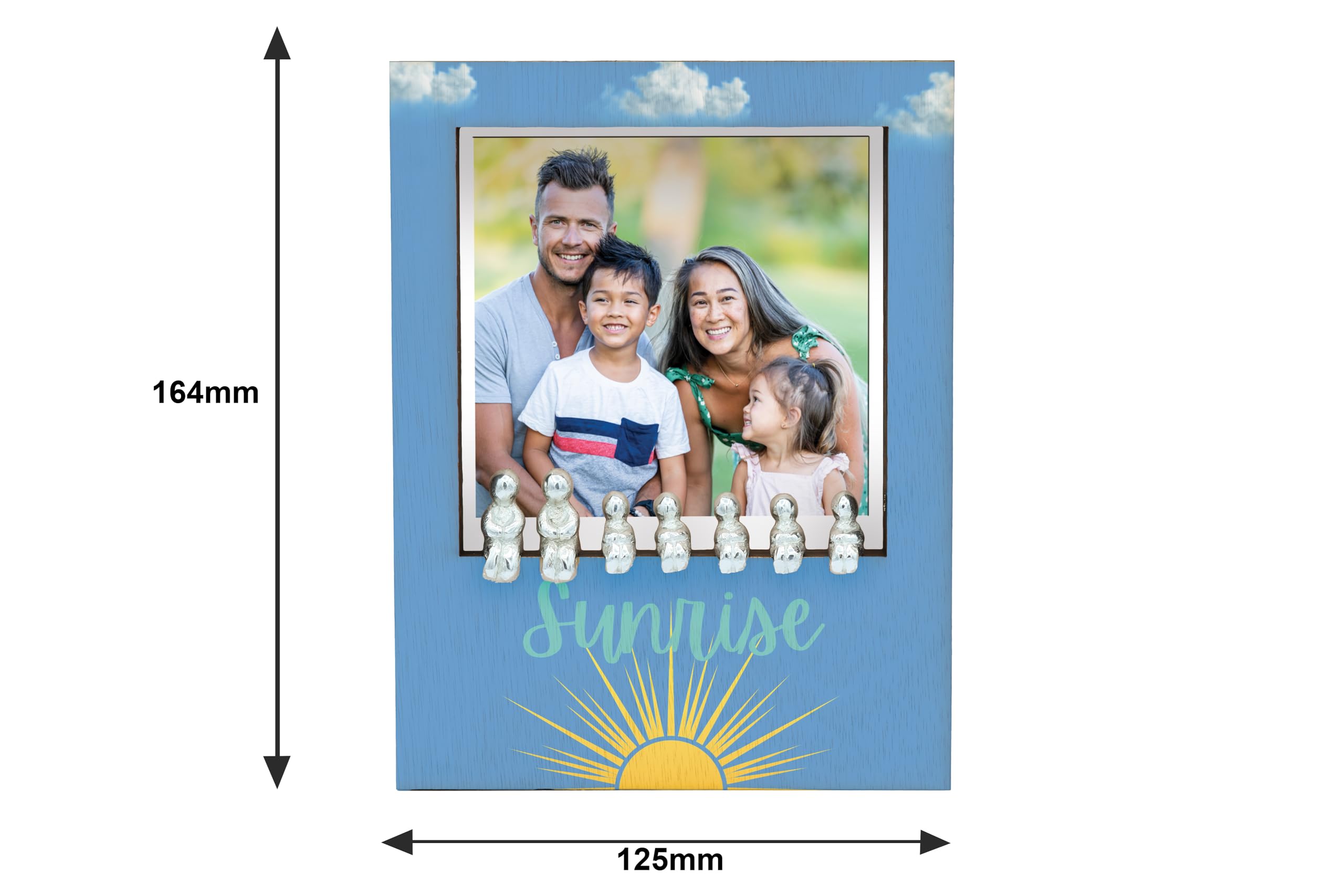 Introducing the Sunrise Family Ornament Photo Frame, a perfect addition to your home decor and a lovely gift idea for couples. This wooden frame with a metal people slot inside allows you to create your own unique family combination, making it a cherished keepsake for years to come. The sunrise design adds a touch of warmth and positivity to any room, while the quality construction ensures durability. Whether you're celebrating a new addition to the family or commemorating a special moment, this family ornament photo frame is a thoughtful choice. We made a family, Each ornament set comes with 7 pieces containing 2 adults and 5 children, you can use these pieces to create your own family combination on the front of the frame/Ornament. So for example you have 2 children then you would only use 2 children in the display. This is a really unique and wonderful family ornament for the home. inpolo-ds23-sunrise