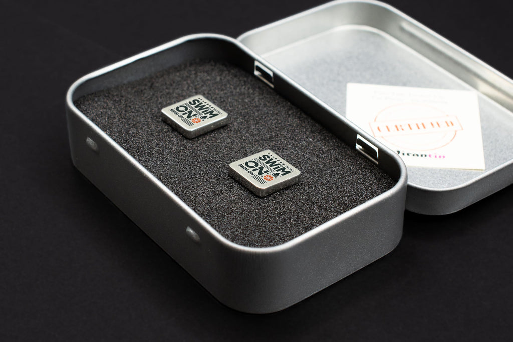 Introducing our Swim On Citrus Droplets Tin Cufflinks, the perfect handcrafted UV printed accessory for swim enthusiasts! These novelty cufflinks feature a playful water droplets motif with a citrus accent, adding a touch of aquatic vibes to your outfit. Made from quality tin and pewter, these cufflinks are not only stylish but also durable. The UV printed design reads 'swim on' in a modern text, making it a fun and unique fashion statement for any sports-themed event. The minimalist style of these cufflinks adds a touch of sophistication to your look, while the full-colour printed design ensures that you stand out from the crowd. Whether you're a competitive swimmer or just a fan of the water, these Swim On Citrus Droplets Tin Cufflinks are the perfect accessory to express your love for swimming.