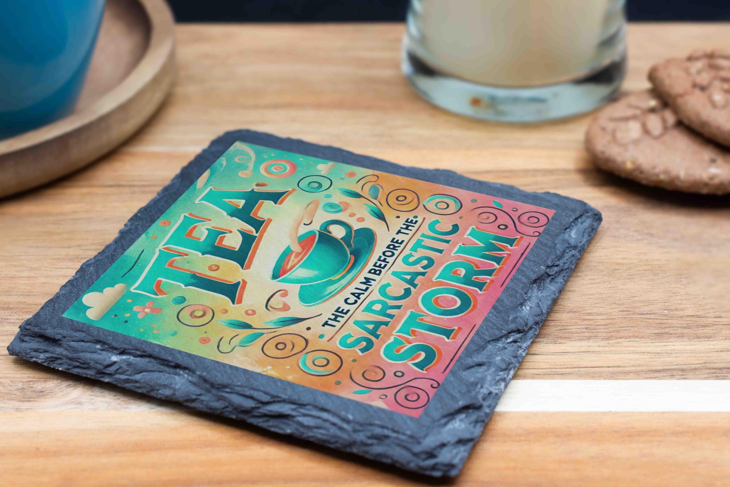 Tea: The Calm Before the Sarcastic Storm Slate Coaster (slco-kf25-calmbeforehg)