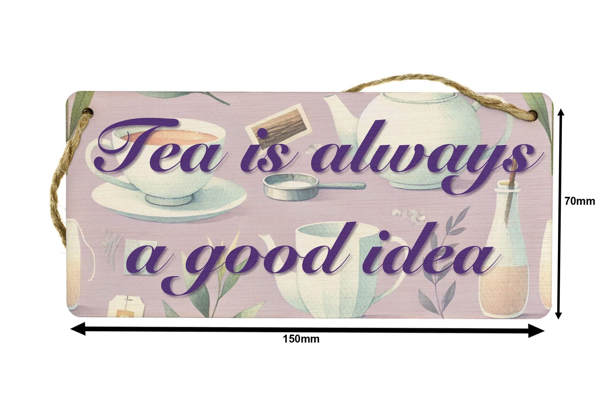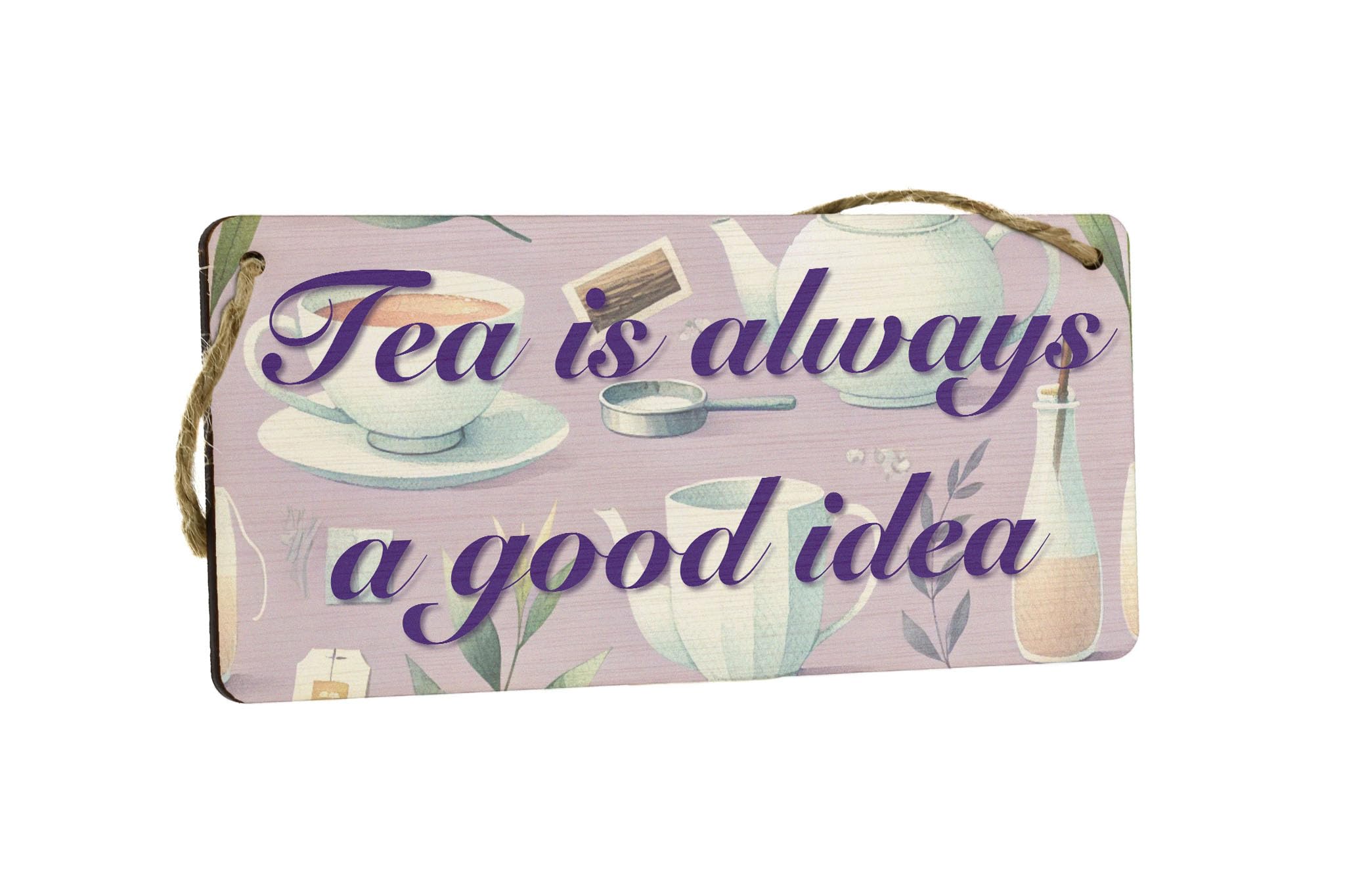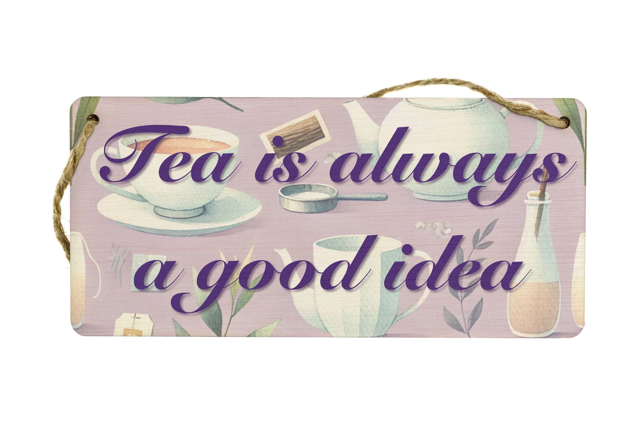 - Playful typography and inspirational message 'tea is always a good idea' for a touch of whimsy
