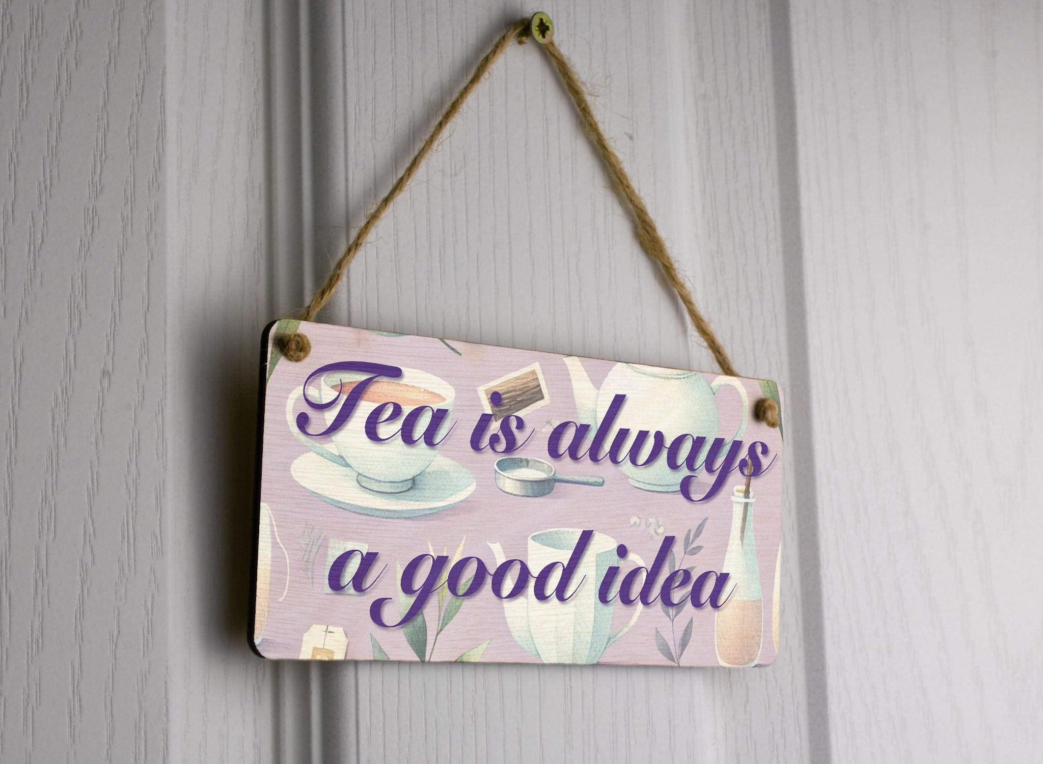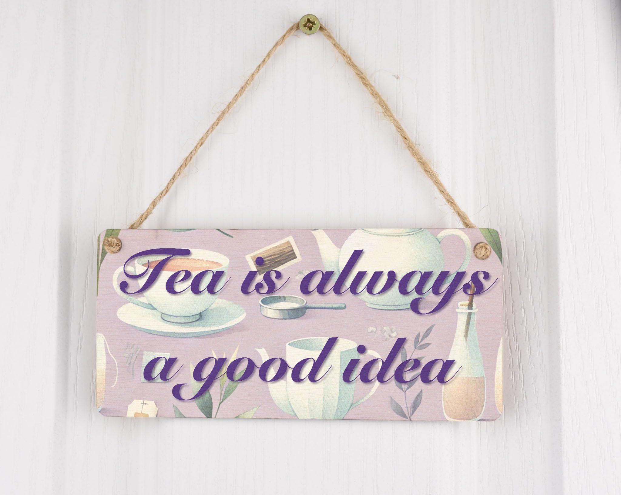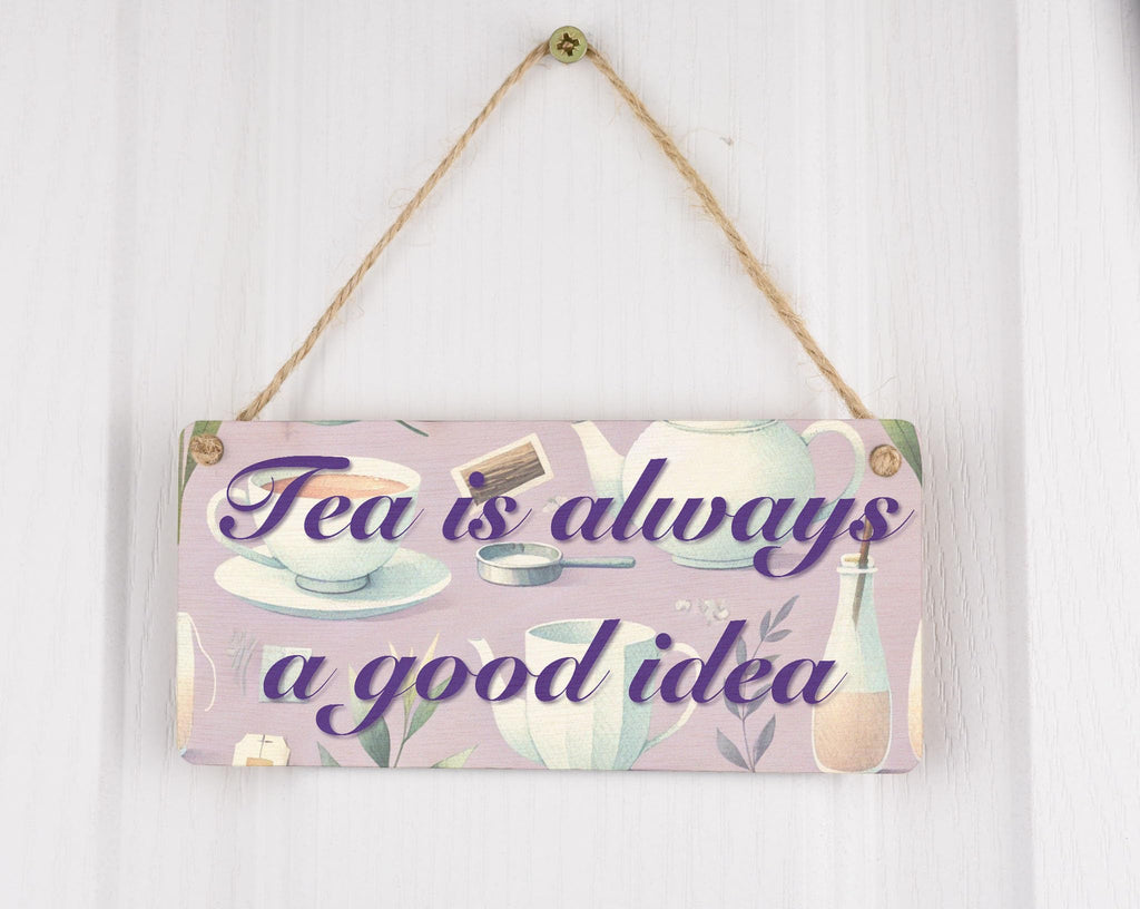 - Playful typography and inspirational message 'tea is always a good idea' for a touch of whimsy