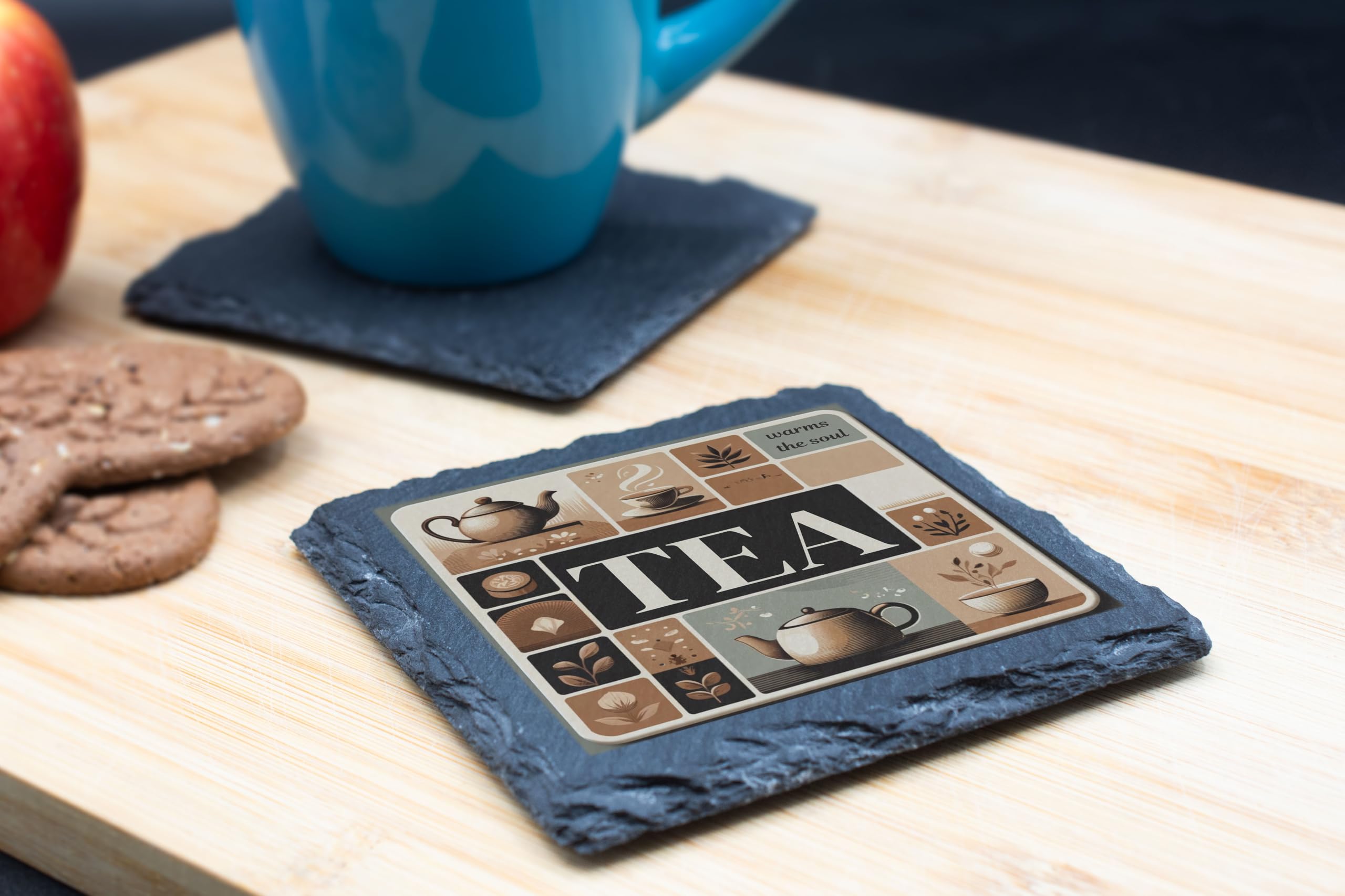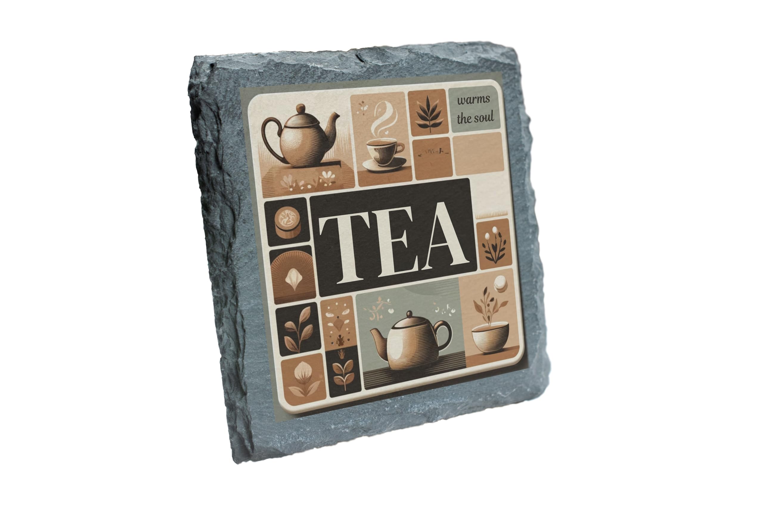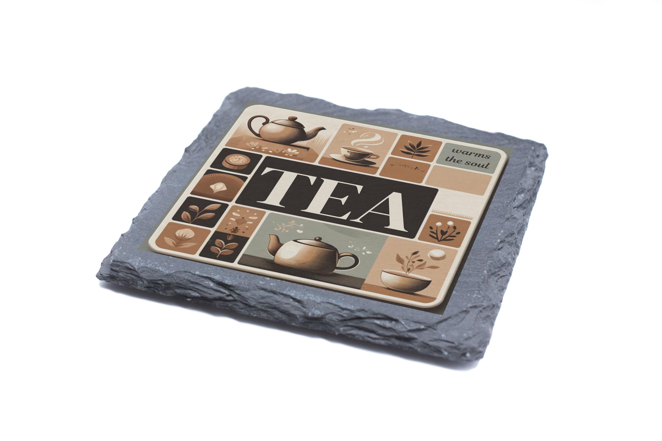 Embrace your love for tea with this beautifully designed "Tea Warms the Soul" Slate Coaster. Showcasing a vintage-inspired artwork that captures the essence of tea culture, this coaster is crafted from high-quality natural slate with a rustic edge, combining style with functionality. Whether you're hosting a tea party or enjoying a quiet cup, this coaster will protect your surfaces while elevating your experience. Perfect for tea lovers and as a unique gift, this coaster is a must-have for anyone who treasures their tea moments.