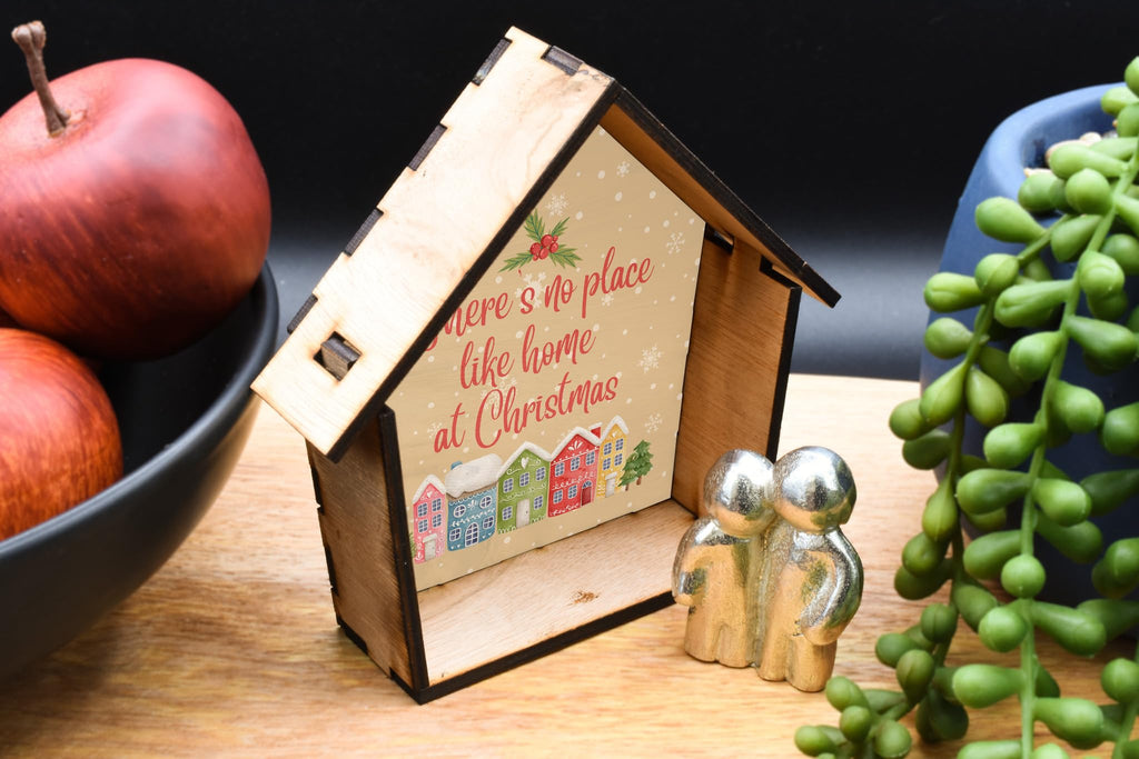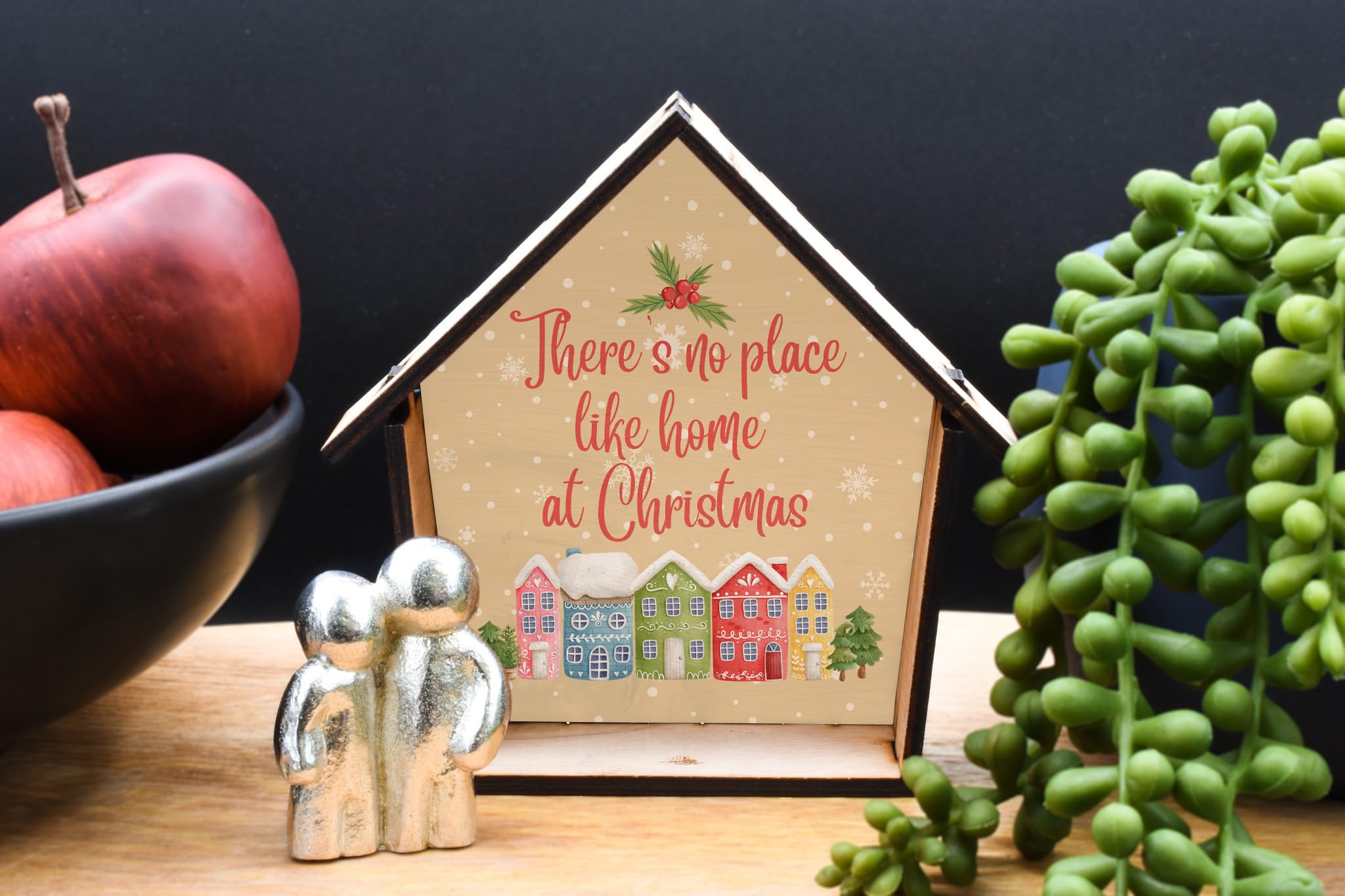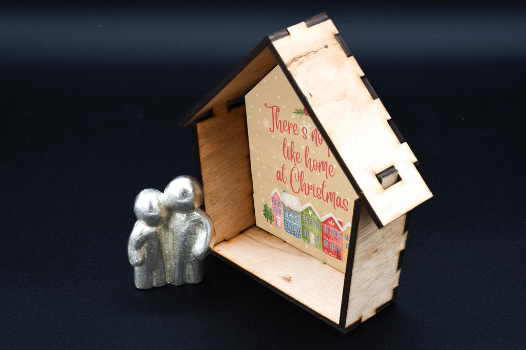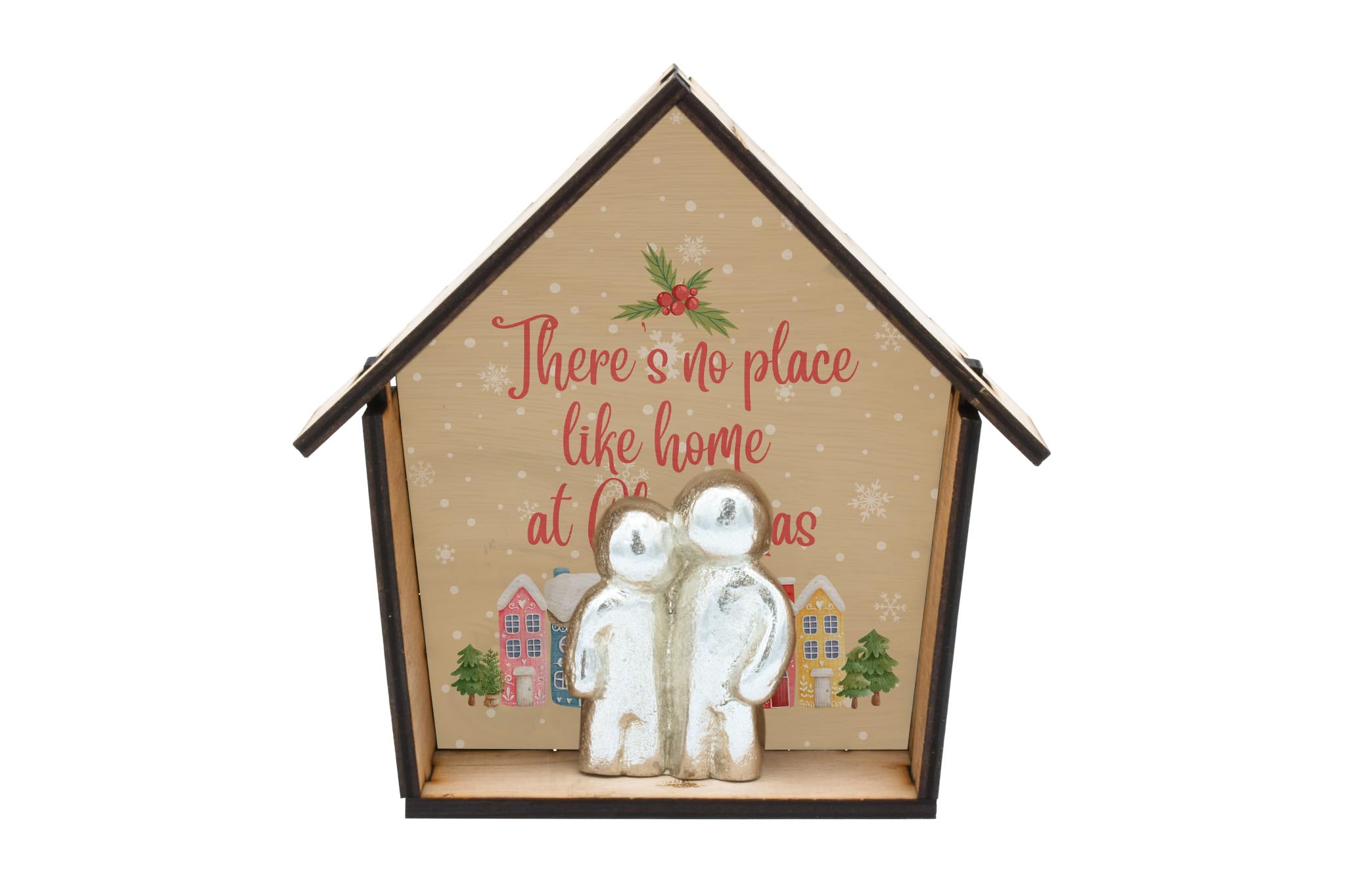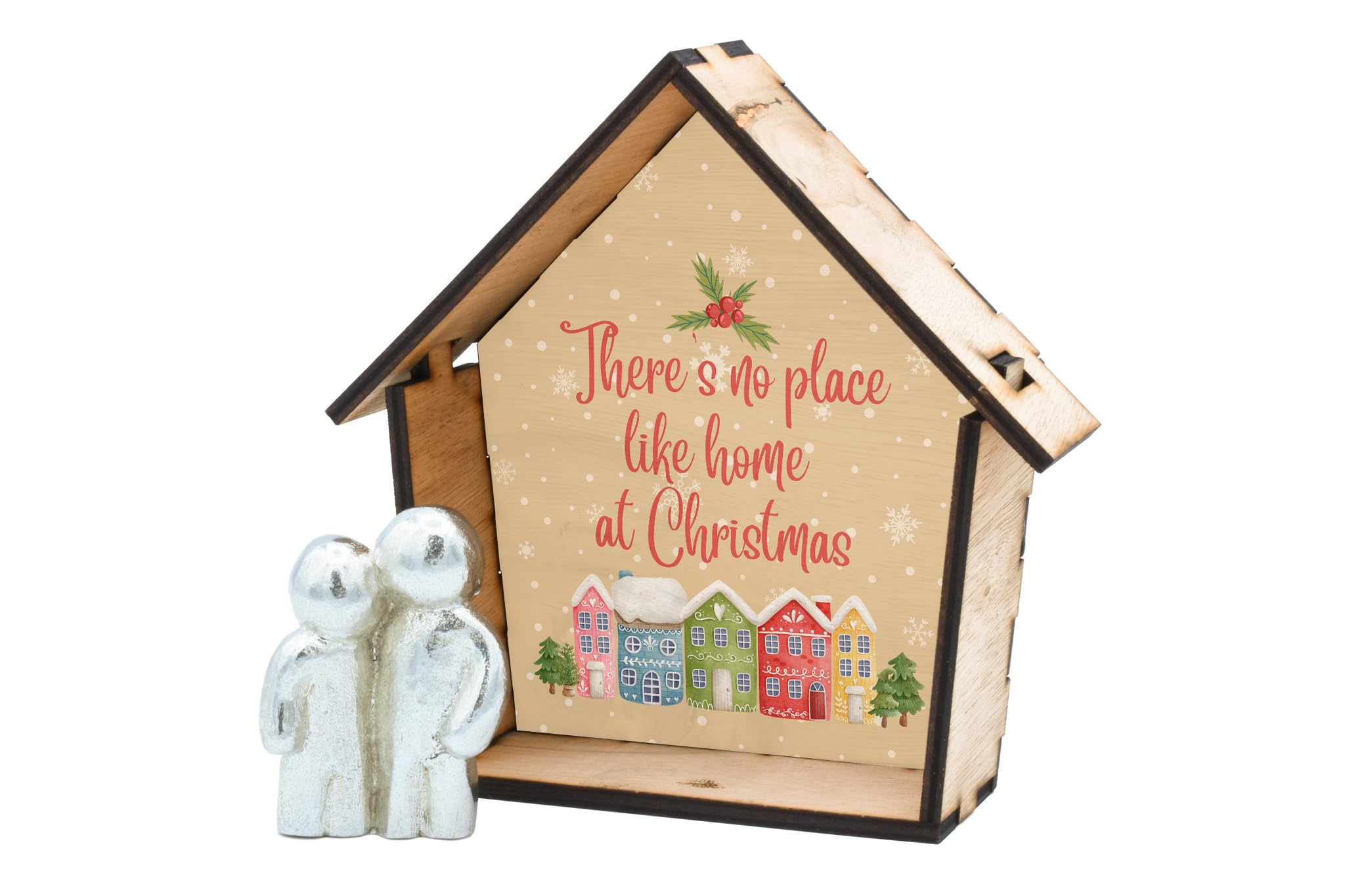 Add a touch of festive cheer to your home this Christmas with our Wooden House Charm Ornament. This delightful ornament features a hugging couple inside, representing the warmth and love of the holiday season. It is the perfect gift for families and couples, and a great addition to your Christmas decorations. Made from quality wood, this ornament is designed to last for many Christmases to come. The full-colour design of a Christmas village with snow and holly on a snowy background creates a beautiful scene that will bring joy to your home. With its free-standing design, you can easily display it on any flat surface. Celebrate the importance of family and the comfort of home with our festive family ornament.