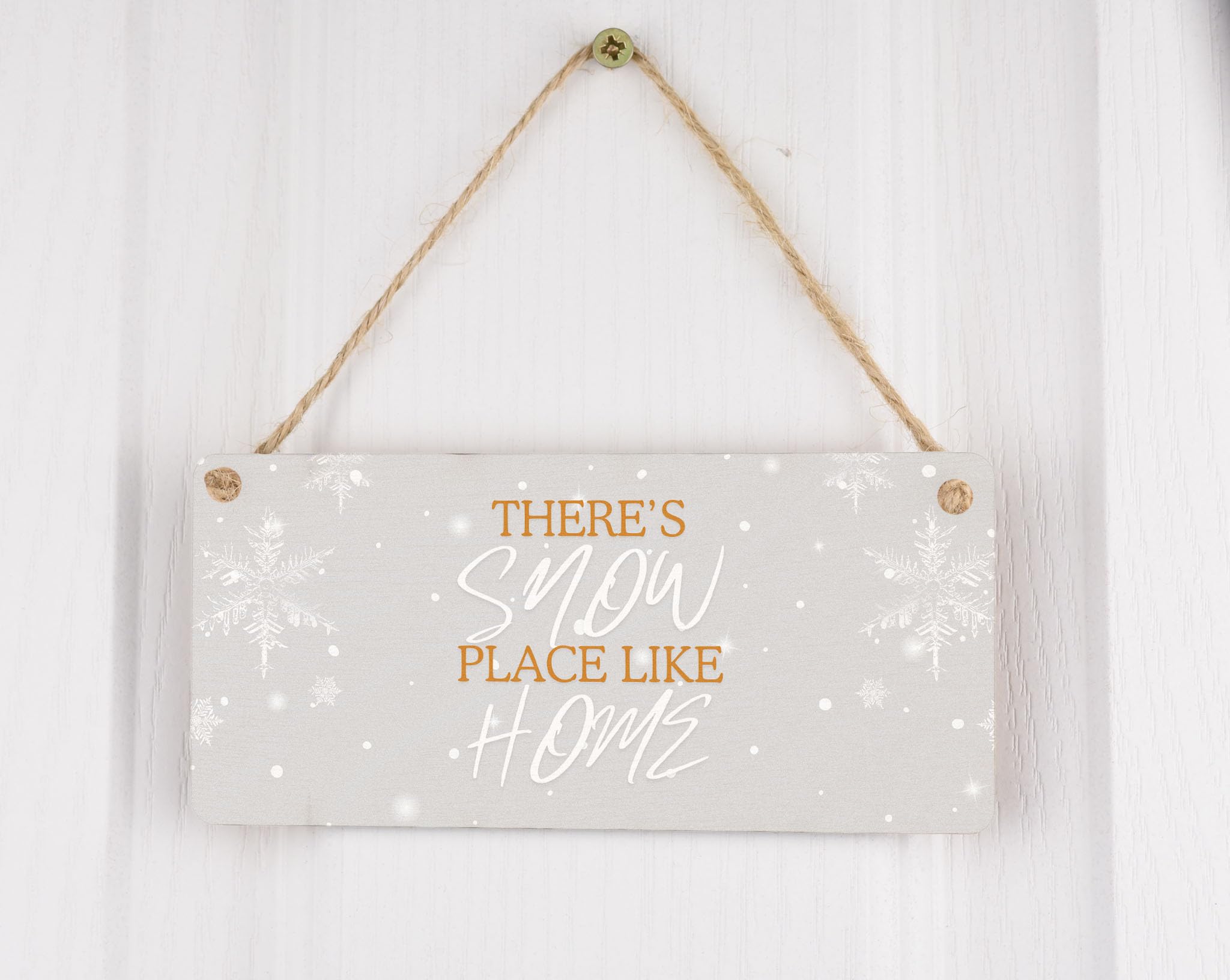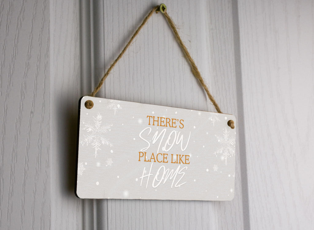 'There's Snow Place Like Home' Plywood Hanging Sign - Funny Novelty Idea for Home! (smlsgn-ds23-snowhome)