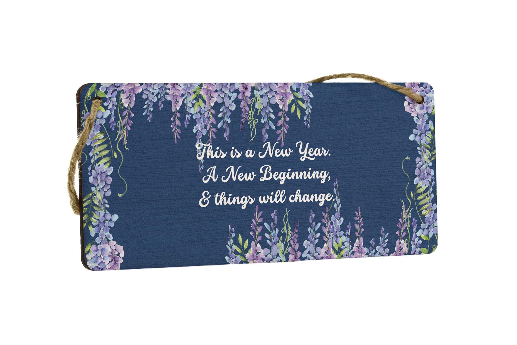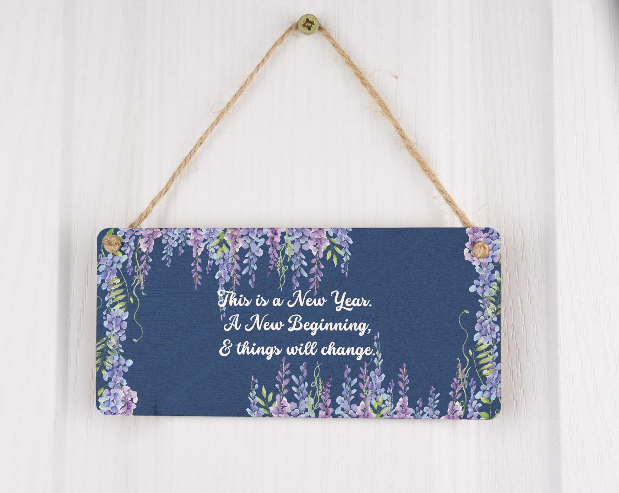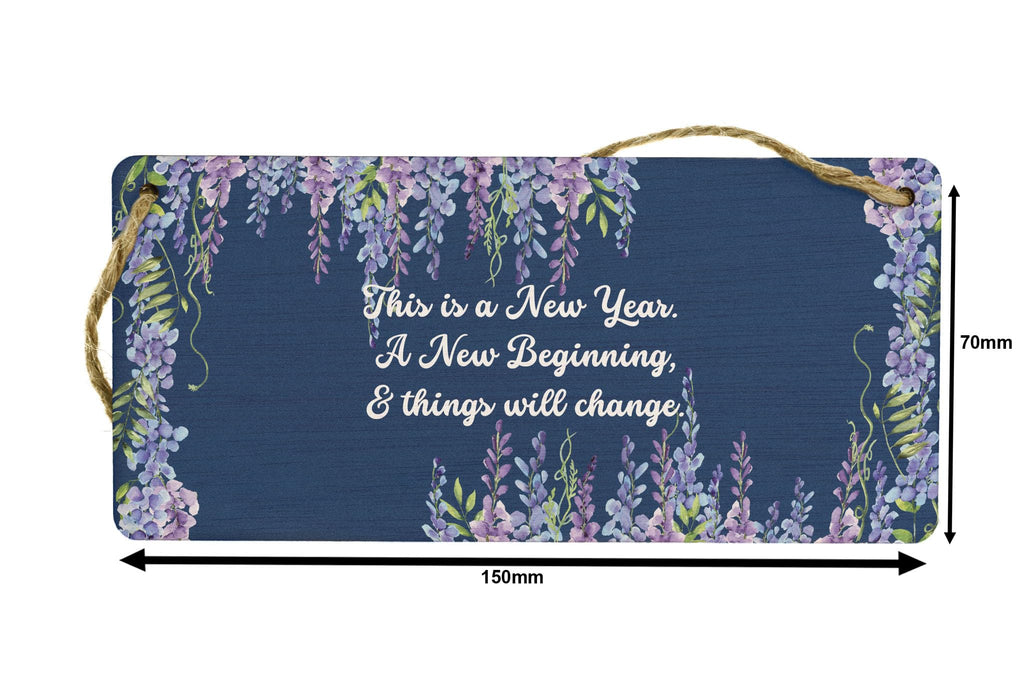 Celebrate the start of a new year with our This is a New Year. A New Beginning and Things Will Change - Plywood Hanging Sign! Made from durable plywood, this charming sign is the perfect addition to any home. Hang it in your living room or proudly display it in your bedroom to bring positive vibes and inspiration to your space. The sign features a beautiful full colour design with white writing on a blue background, adorned with a lovely flower border. Whether it's for your wife, husband, girlfriend, boyfriend, son, daughter, or siblings, this charming sign makes an excellent gift. With its heartfelt message that reads 'This is a New Year, a New Beginning and Things Will Change,' it serves as a reminder that the upcoming year holds endless possibilities. Start the year by prioritising positivity and motivation with our This is a New Year. A New Beginning and Things Will Change - Plywood Hanging Sign!
