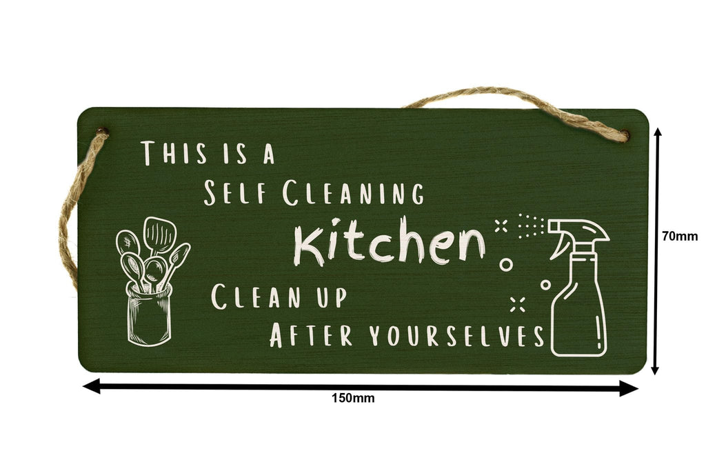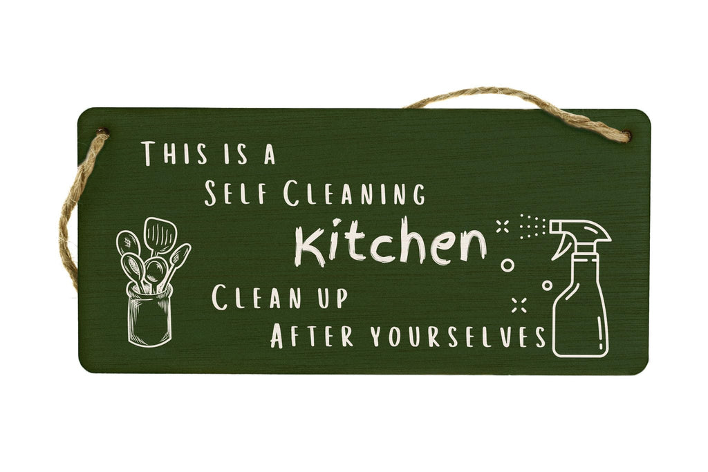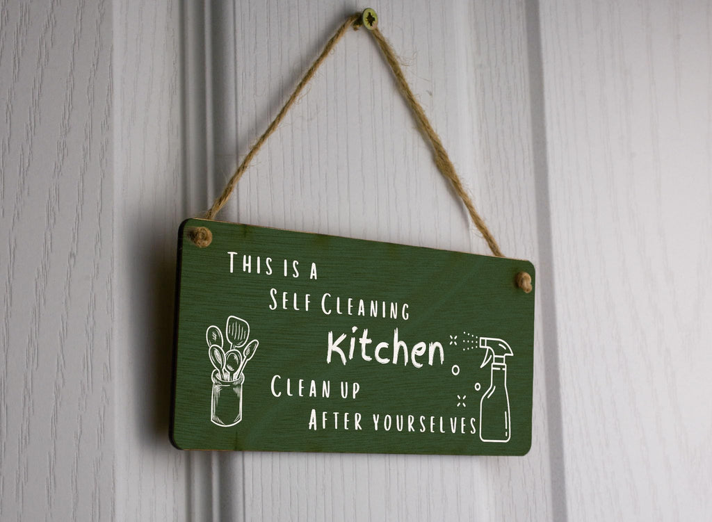 - Reads 'This is a Self-Cleaning Kitchen, Clean Up After Yourselves' - a gentle reminder for everyone in the household