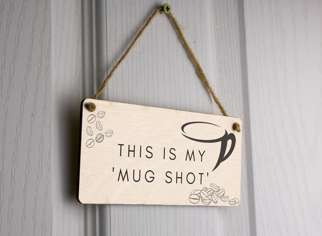 Introducing the 'This is My Mug Shot' Funny Novelty Plywood Hanging Sign! This hilarious and unique sign is the perfect addition to any room. Made from quality plywood, this sign is durable and long-lasting. Hang it in your living room, kitchen, or bedroom to add a touch of humour to your space. The sign features a delightful image of a coffee cup and beans, along with bold black writing on a light brown background. The full colour design adds a vibrant and eye-catching element to the sign. Whether you're looking for a gift for your wife, husband, girlfriend, boyfriend, son, daughter, or siblings, this funny novelty sign is the ideal choice. It's a great way to show your loved ones that you appreciate their sense of humour. Surprise them on their birthday, anniversary, or any special occasion with this amusing and entertaining gift. Not only is this sign a fantastic conversation starter, but it also adds a touch of personality and charm to any space. Hang it on your door, in your living room, or in your kitchen to give your space a unique and fun vibe. The 'This is My Mug Shot' Funny Novelty Plywood Hanging Sign is a must-have for anyone with a love for coffee and a great sense of humour.