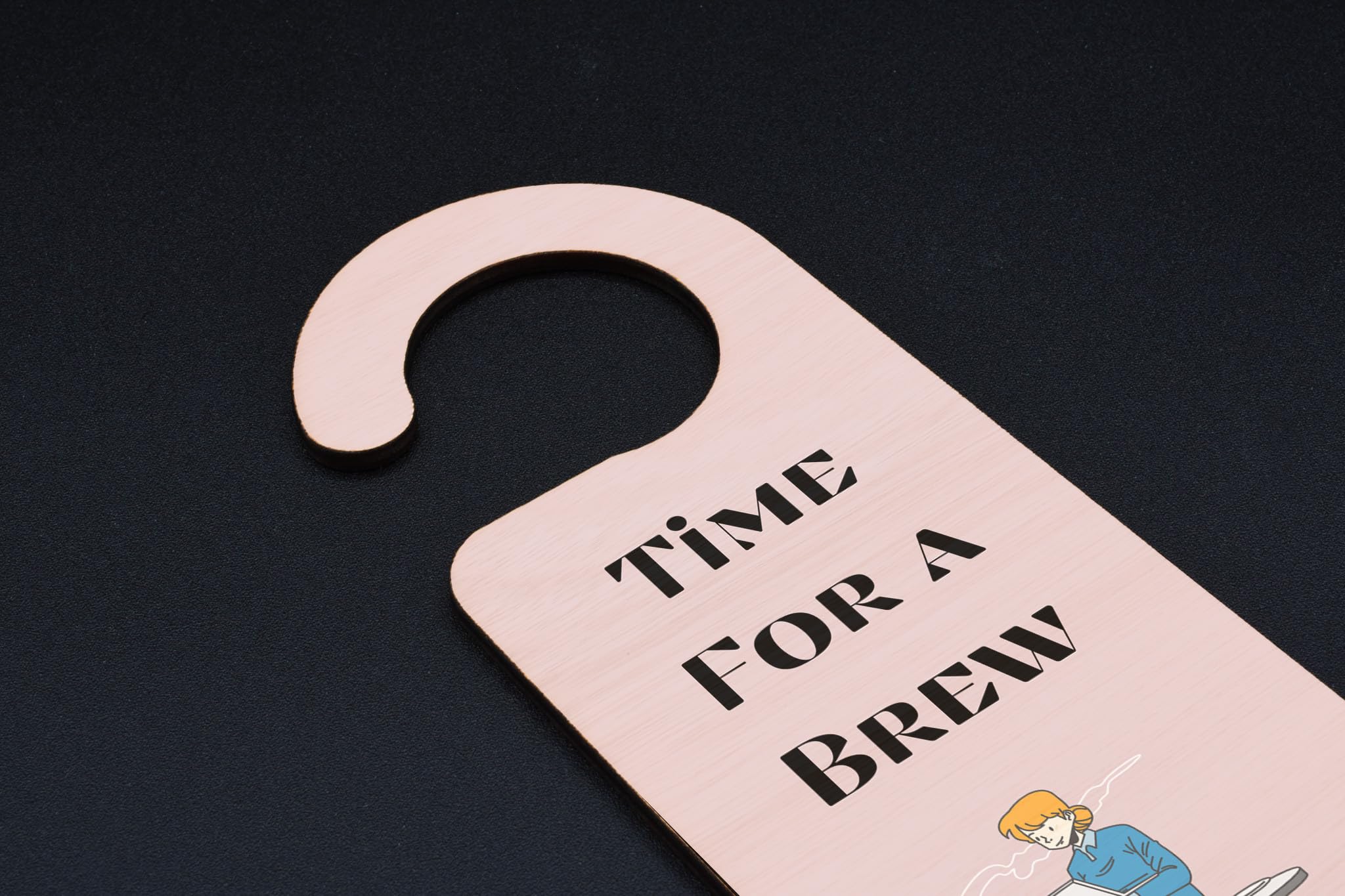 Add a touch of charm and personality to any room with our Plywood Door Handle Hanger designed with a delightful Pink colour and featuring a person drinking a hot beverage. This unique and eye-catching hanger serves as a perfect kitchen, room, or door sign that will bring joy and warmth to your home. It also makes a wonderful gift for your family, parents, grandparents, son, daughter, or siblings. With its quality plywood material and full-colour design, this hanger is not only visually appealing but also durable and long-lasting. Whether you hang it on your kitchen cabinet handles, bedroom door knobs, or room hooks, it will instantly transform the atmosphere and bring a cozy touch to any space. Get ready to create a welcoming environment with our charming door hanger!