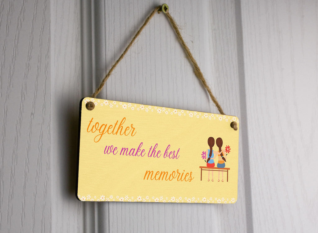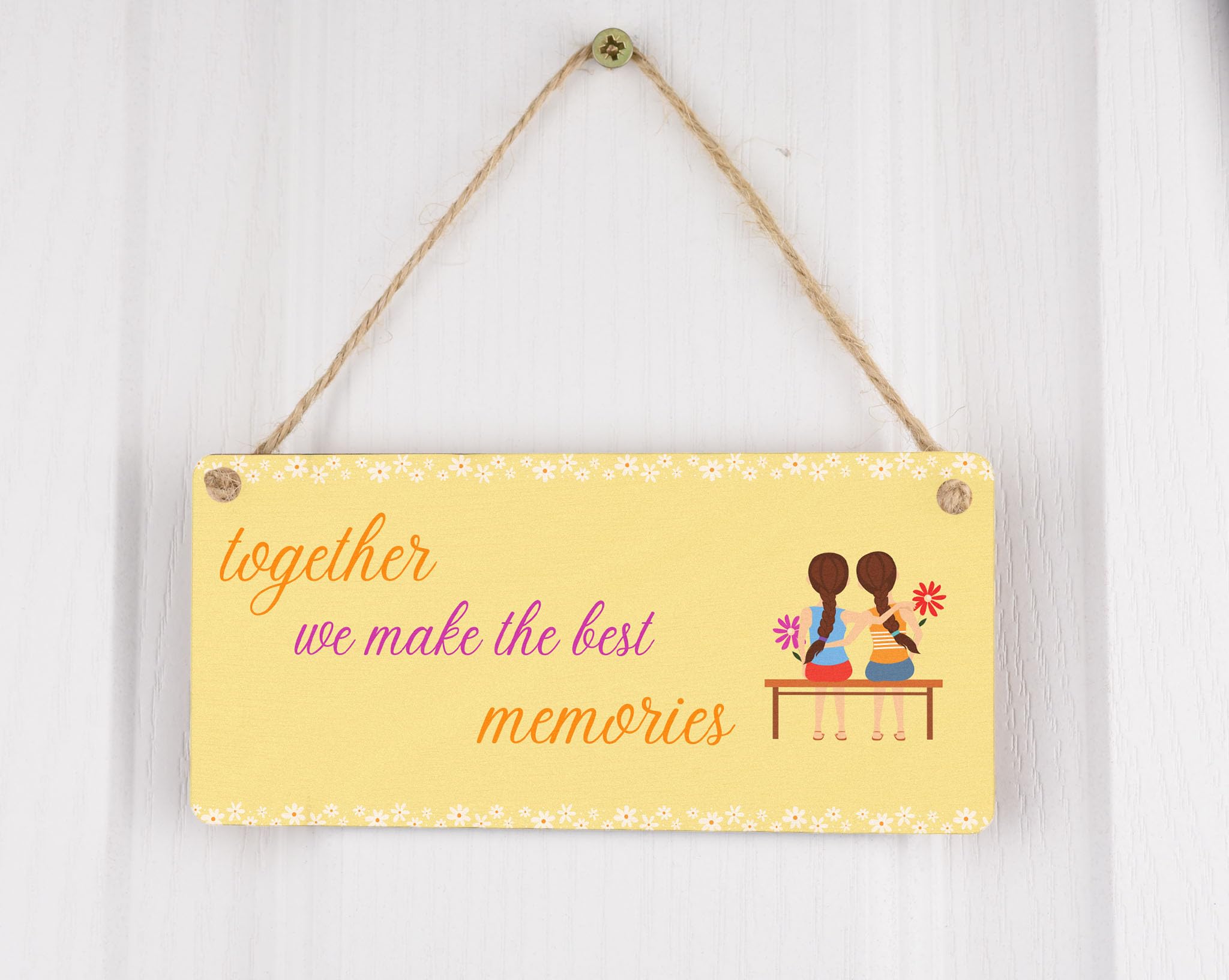 'Together We Make the Best Memories' Vibrant Plywood Hanging Sign for Home, Friends and Loved Ones (smlsgn-ds23-besttogmem)