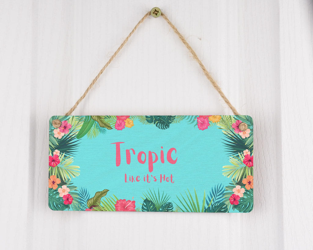 Add a touch of tropical paradise to your home with our beautiful Topic Like its Hot - Plywood Hanging Sign. This stunning home decor gift is perfect for family and friends who love the vibrant and exotic vibes of the tropics. Designed with a tropical theme, this sign features the phrase 'Tropic Like It's Hot' in a full colour design, with pink writing, a blue background, and a tropical flower border. Made from quality plywood, this hanging sign is durable and long-lasting, making it the perfect addition to any room in your home. Hang it in your living room, bedroom, or even in your office to bring a little taste of paradise wherever you go. It also makes a great gift for your wife, husband, girlfriend, boyfriend, son, daughter, or siblings. Transform your space into a tropical oasis with our Plywood Hanging Sign!