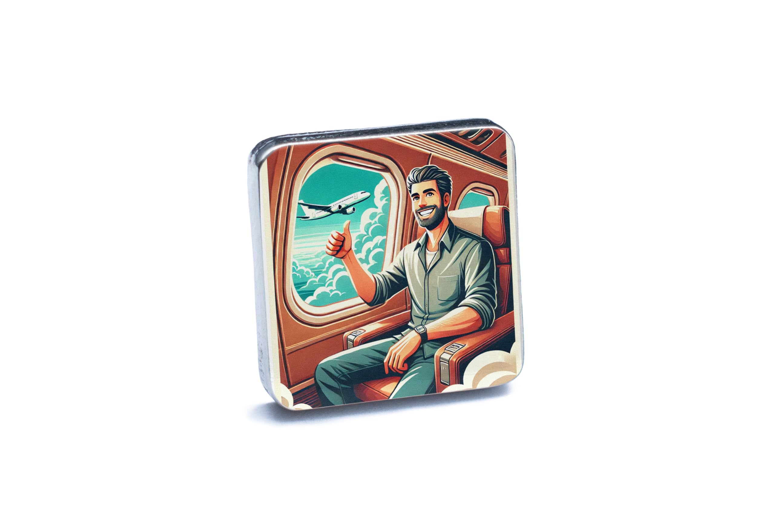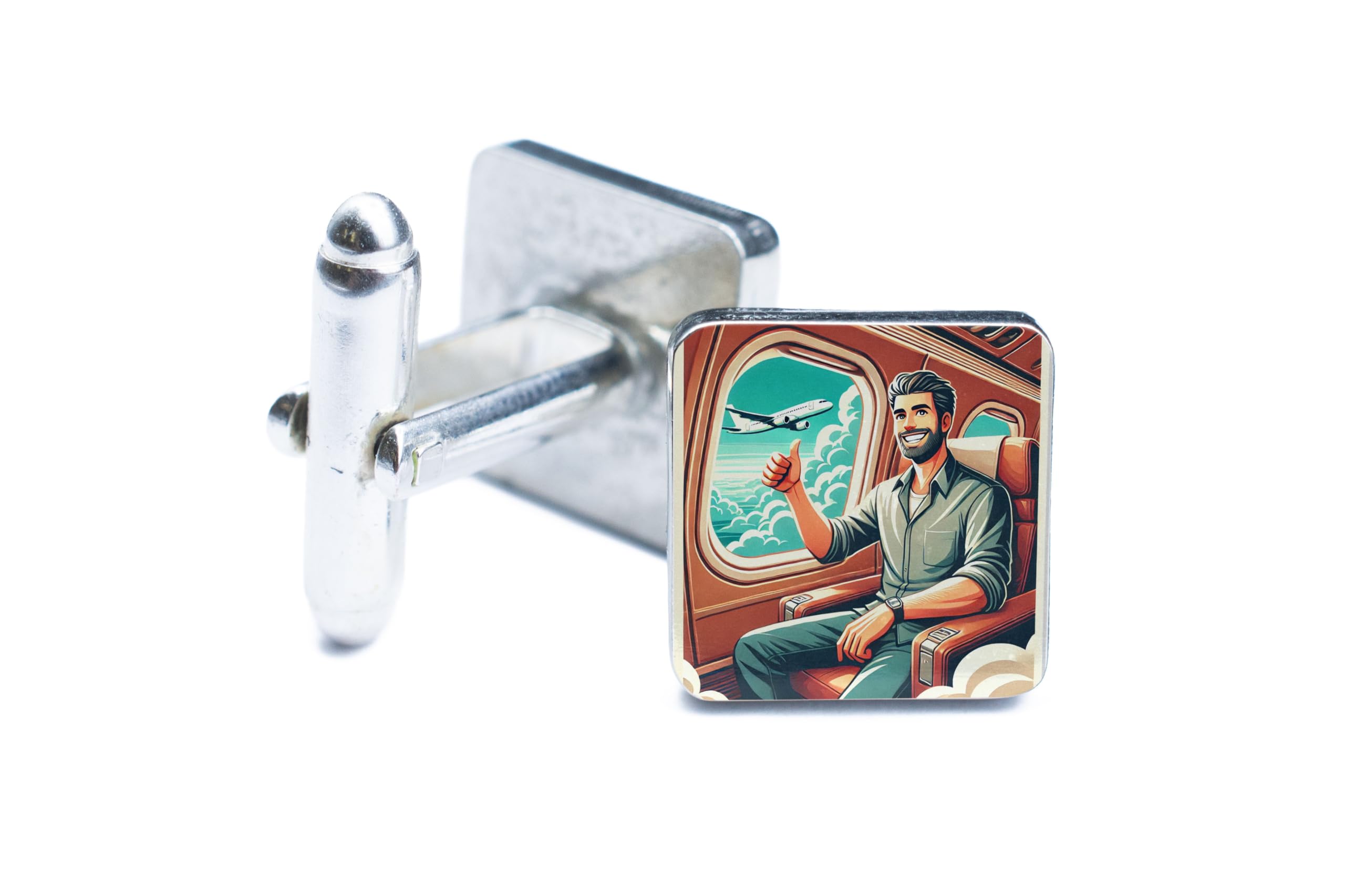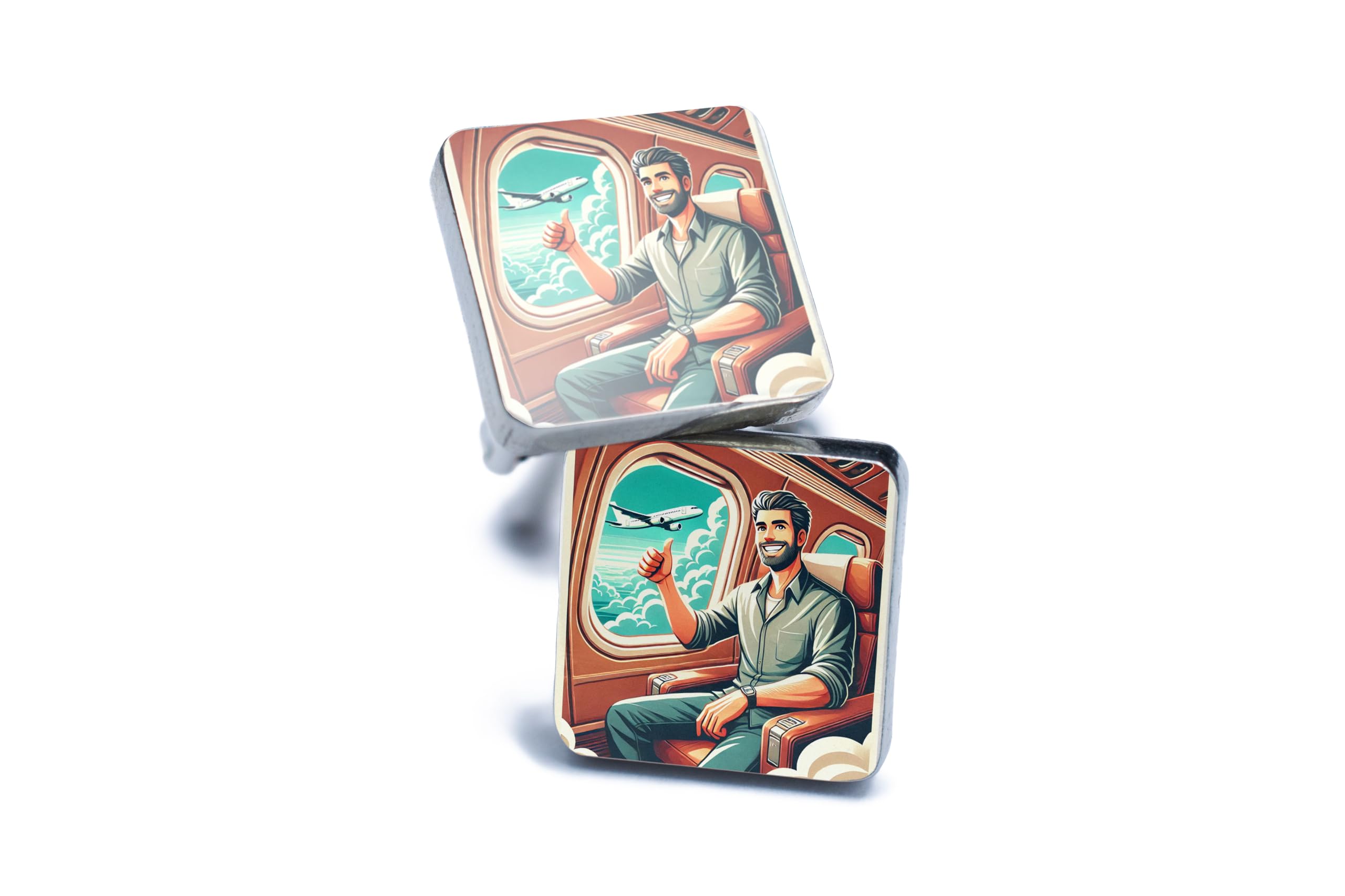 Celebrate the Joy of Travel in Style Take your love for travel to new heights with these airplane-themed cufflinks. Featuring a vibrant and cheerful scene of a traveler giving a thumbs-up from an airplane window, these cufflinks are the perfect accessory for anyone who loves flying or exploring new destinations. Add a touch of adventure to your outfit, whether at work or special events. Crafted for Quality and Elegance Made with high-quality materials and a polished finish, these cufflinks are both durable and stylish. The secure clasp ensures a comfortable fit, making them perfect for long hours at events or during everyday wear. A Thoughtful Gift for Travel Enthusiasts Looking for a unique gift for someone who loves to travel? These cufflinks are a meaningful and stylish way to celebrate their passion for aviation and adventure. Whether it's for a birthday, holiday, or just because, they?re sure to bring a smile to their face. Take your style to the skies with these travel-inspired cufflinks, designed to capture the thrill and excitement of exploring the world!