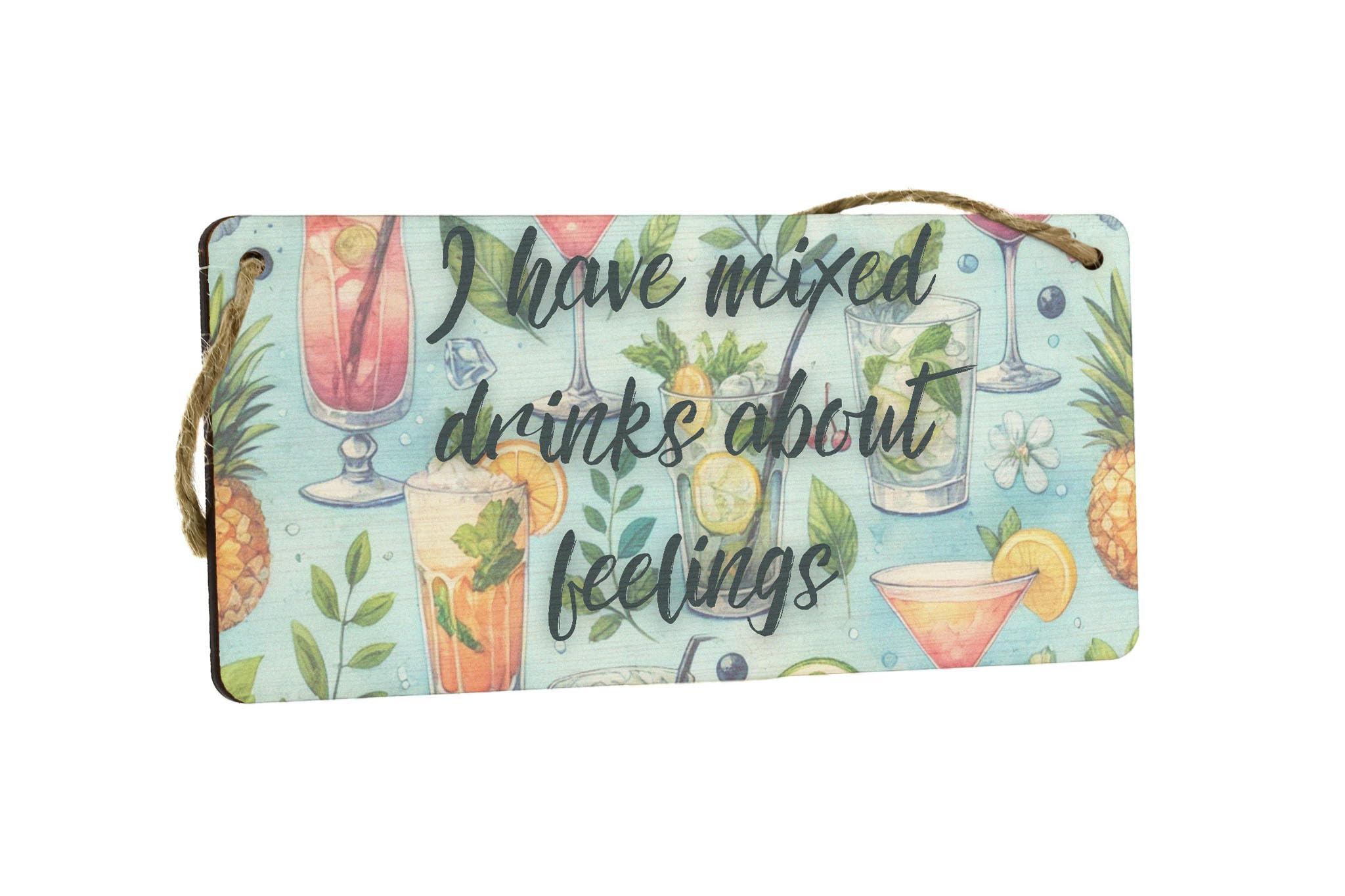 - Humorous quote 'I have mixed drinks about feelings' for a lighthearted touch