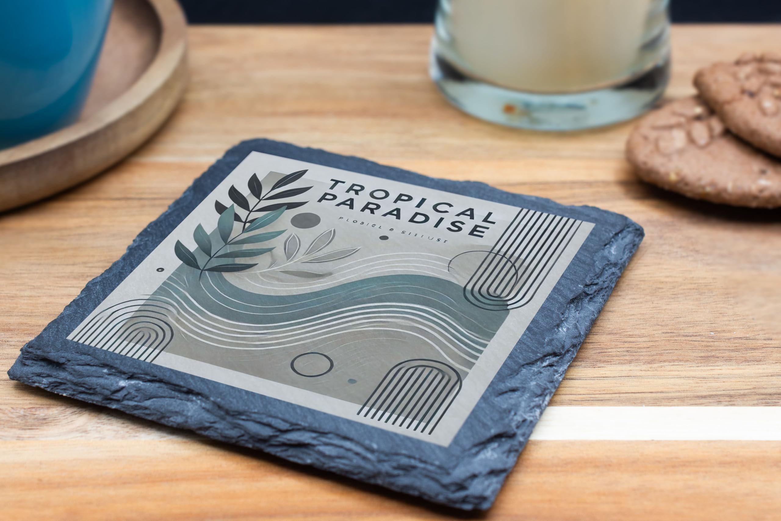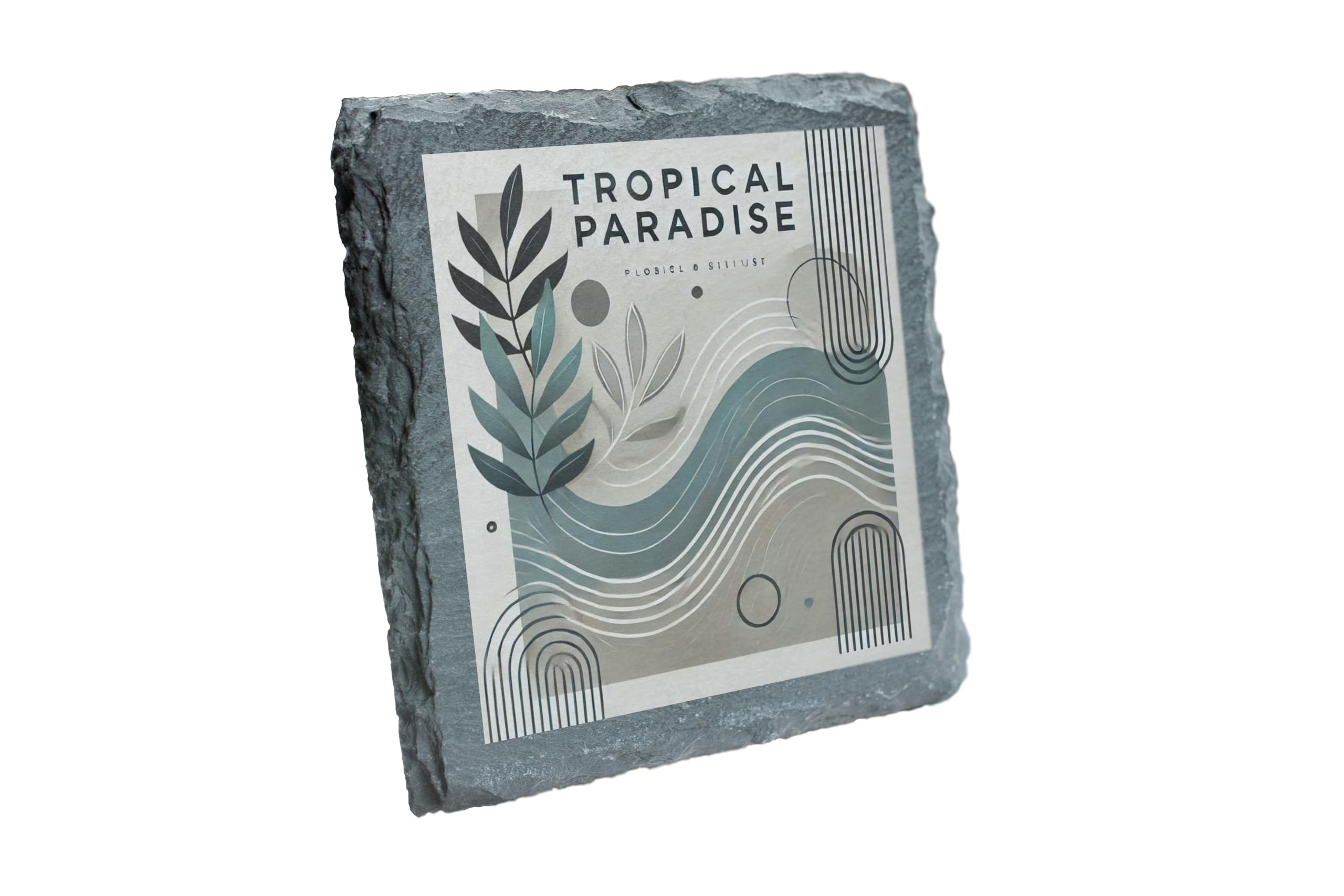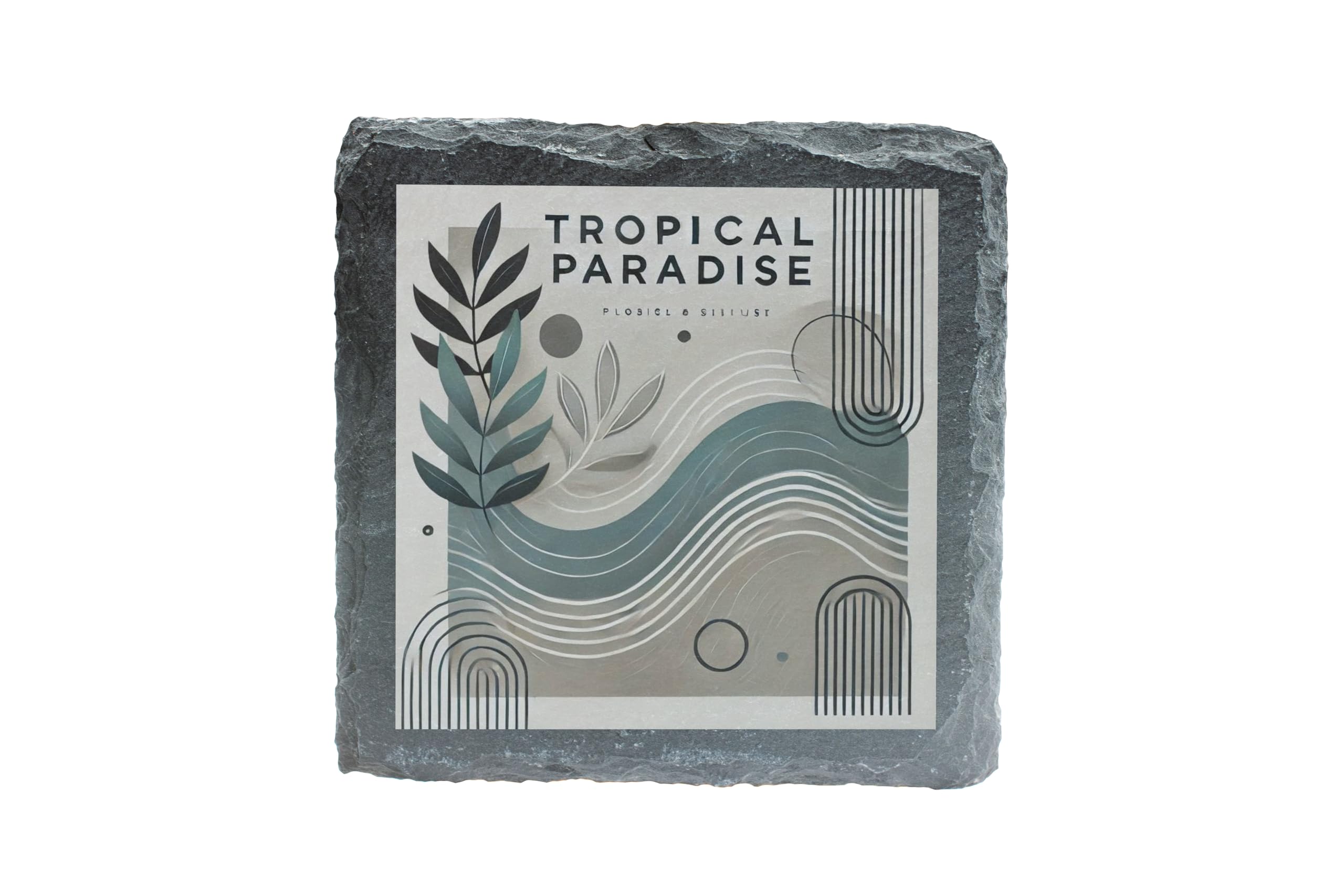 Embrace the serene beauty of nature with this Tropical Paradise Slate Coaster. Featuring a chic, minimalist design with botanical leaves and flowing waves, it evokes a sense of calm and elegance. Perfect for modern interiors, it effortlessly blends functionality with style. Crafted from durable natural slate, this coaster not only protects surfaces but also serves as a contemporary decor accent. Its neutral tones and artistic design make it a versatile addition to any home or office. Whether you're sipping coffee or hosting guests, this coaster enhances your space with a touch of tropical sophistication. A thoughtful gift for those who appreciate simplicity and natural beauty.