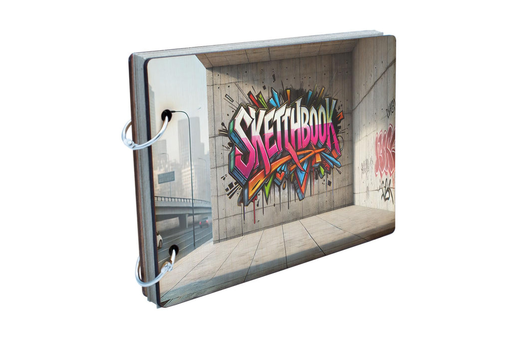 Unleash your artistic expression with our Urban Graffiti Sketchbook with Wooden Cover. This graffiti-themed sketchbook is the perfect companion for urban design enthusiasts and street art lovers. The ring-bound design allows you to easily flip through pages and create your own colourful graphics inspired by the urban landscape. The wooden cover not only provides a stylish and inspirational touch but also protects your artwork. Every time you open this art-focused sketchbook, you will be greeted by the AI Generated cover art showcasing 'Graffiti in an urban environment'. The 25 recycled pages offer a canvas for your creativity, whether it's a quick sketch or a detailed art portfolio. Take this portable drawing pad with you wherever you go and capture the vibrant essence of the city on paper.