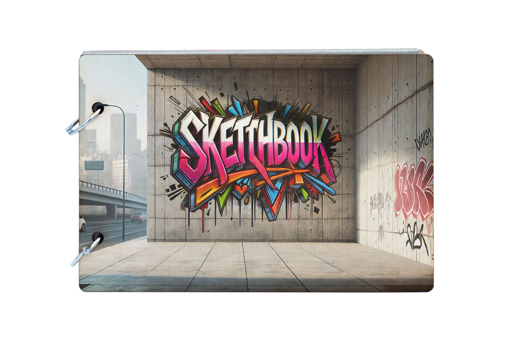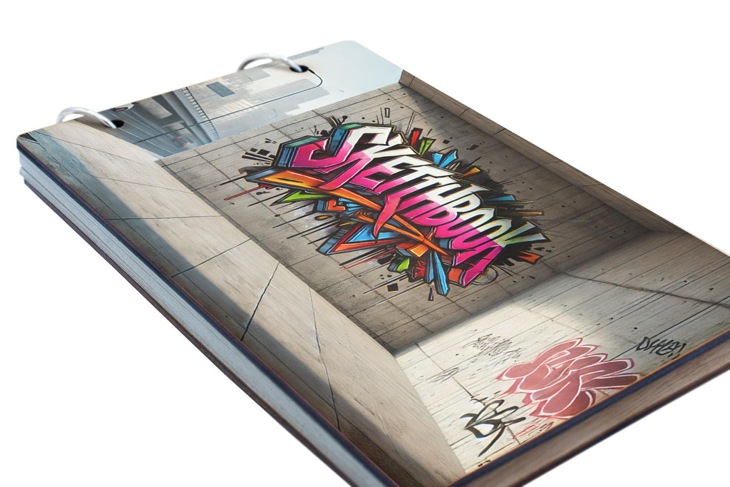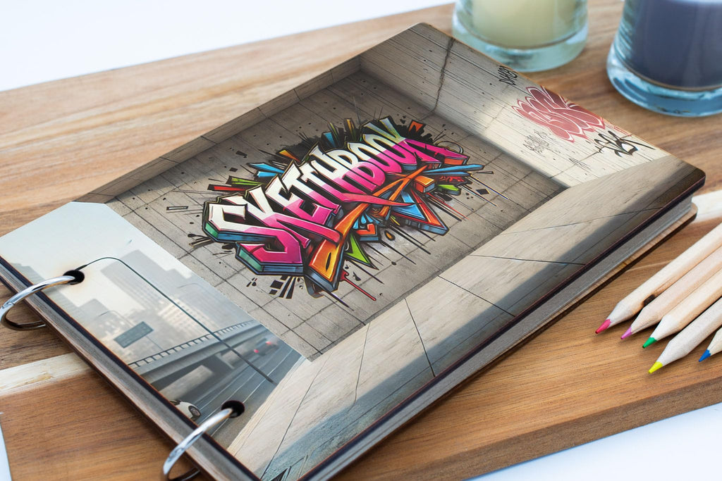 - Wooden cover with AI Generated graffiti art for an inspirational touch
