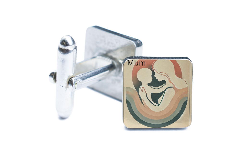 - UV printed cufflinks with a sentimental 'Mum' design