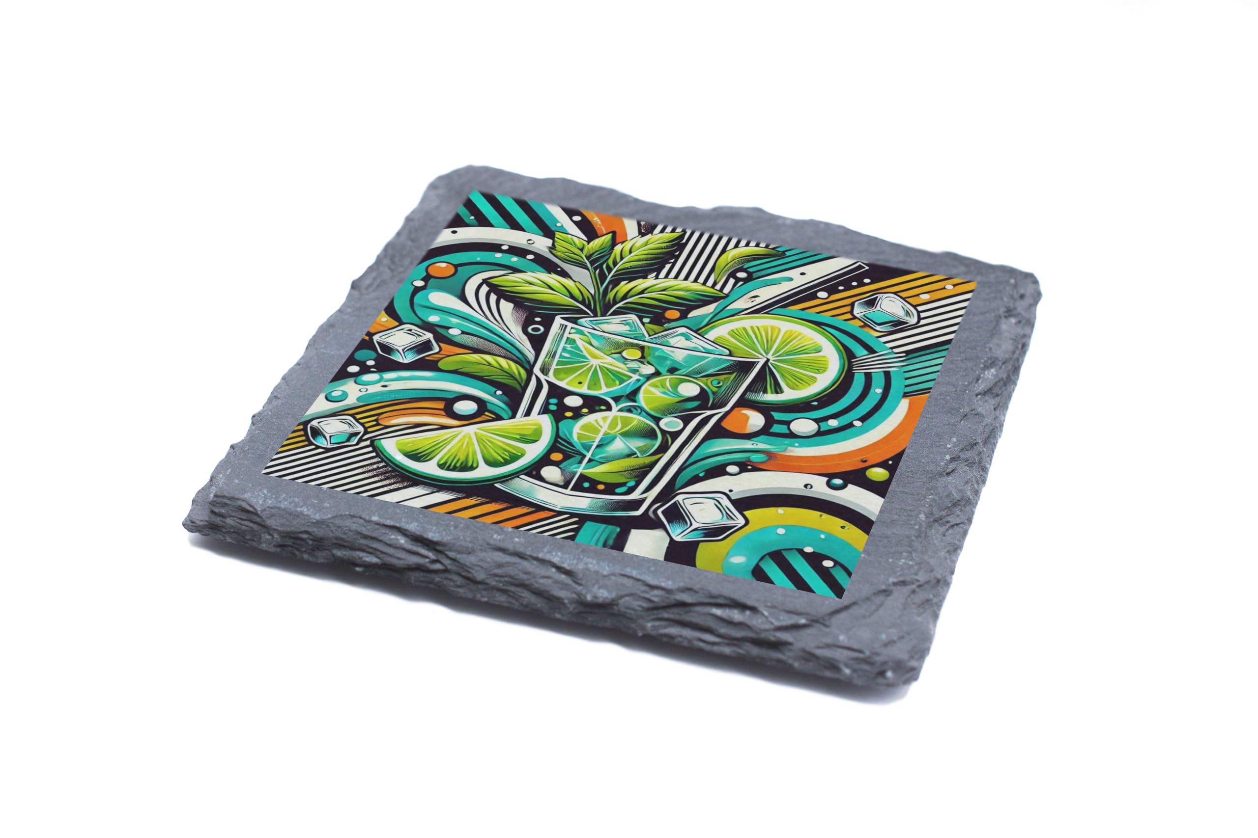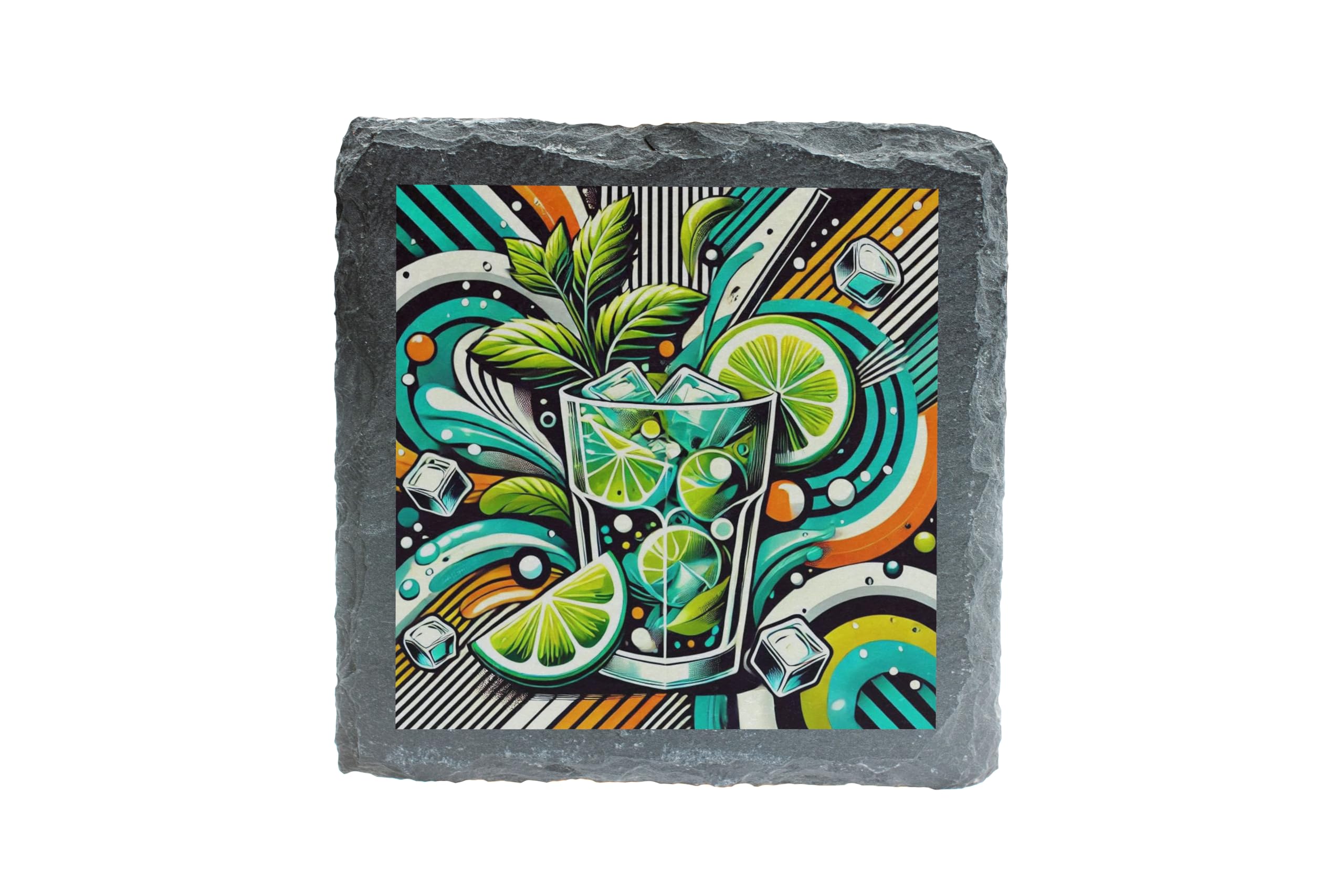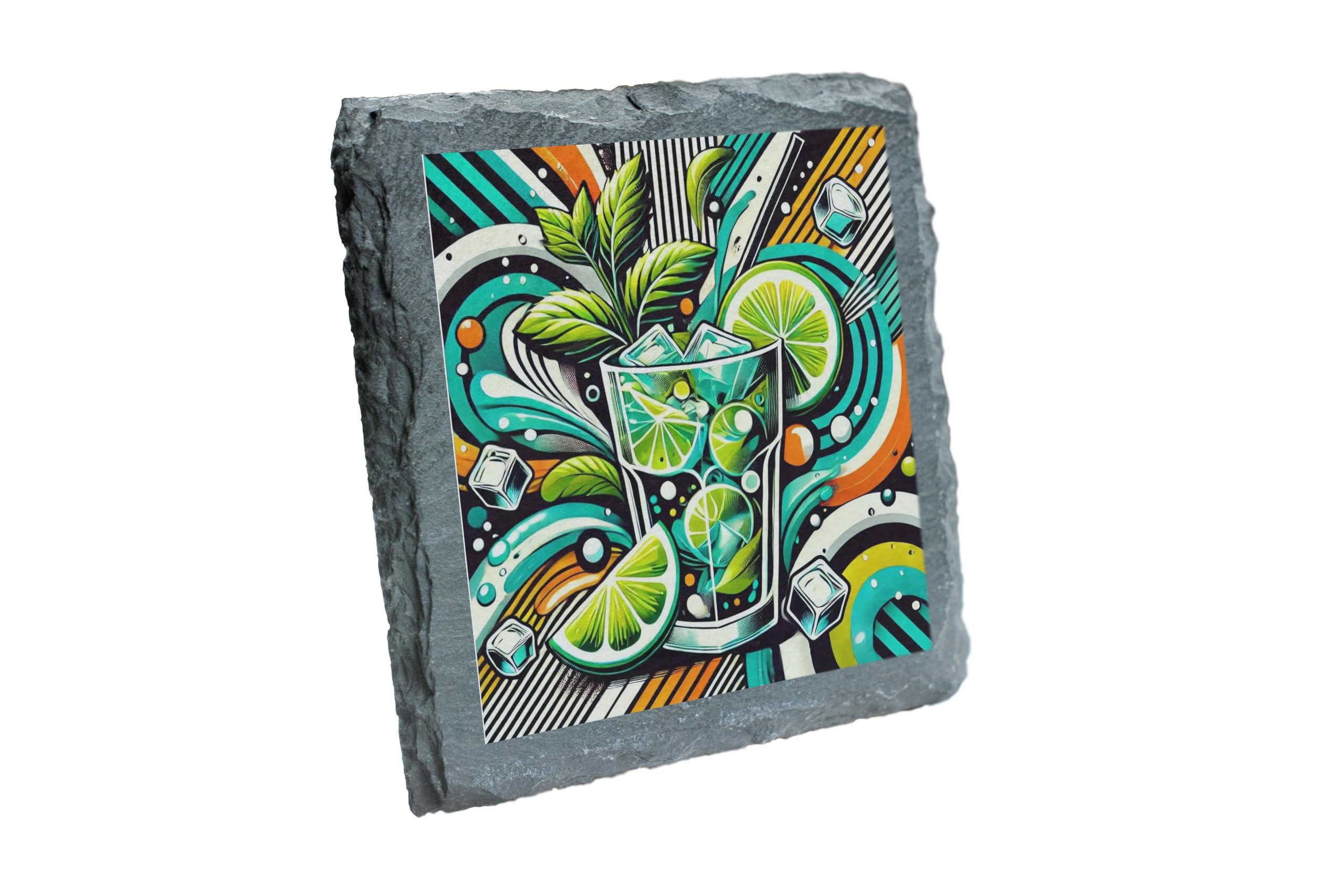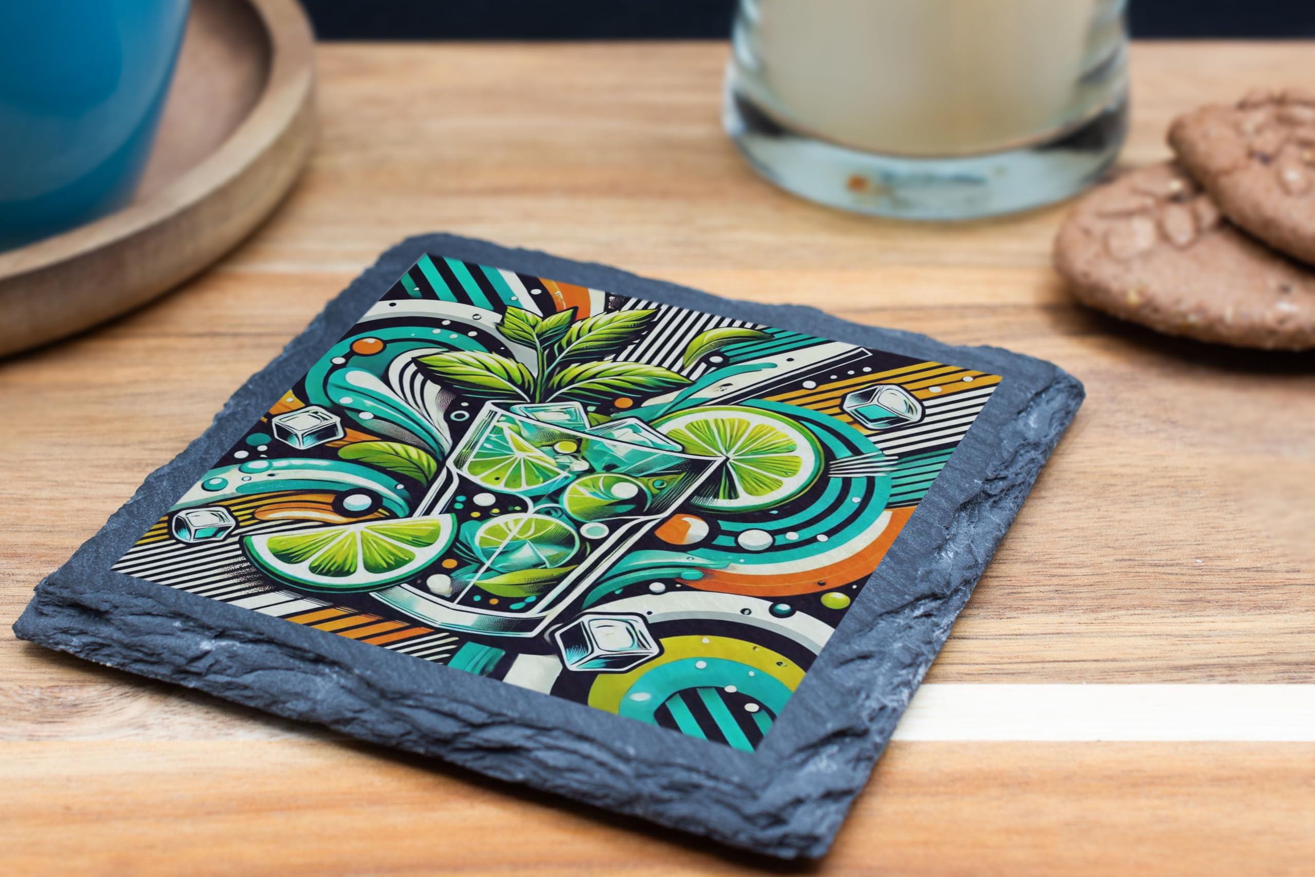 Vibrant Mojito Slate Coaster ? Bold Lime and Mint Cocktail Design (slco-ds24-mojitogreenrg)