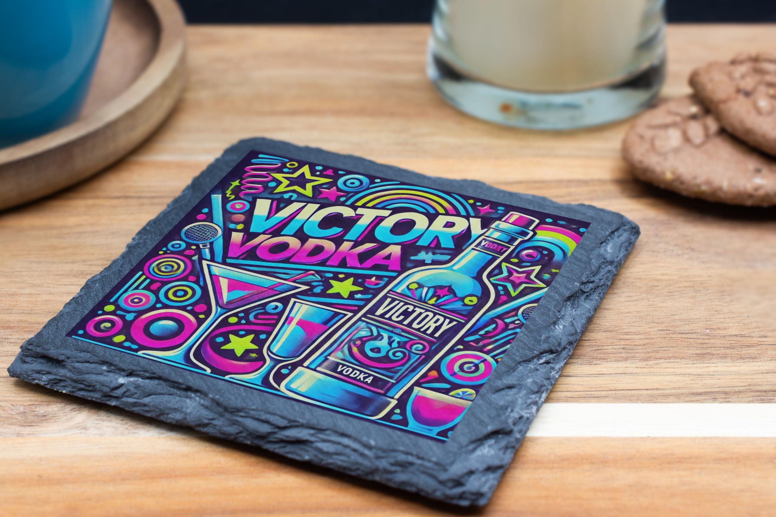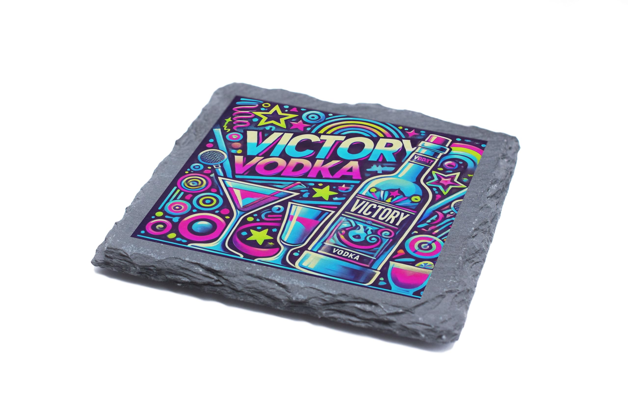 Celebrate every sip with the vibrant "Victory Vodka" Slate Coaster! This eye-catching coaster is a perfect addition to your barware collection or a fun gift for the vodka enthusiast in your life. Crafted from durable slate, it ensures both style and functionality by protecting surfaces from spills and heat. Its bold and colorful design will bring energy and personality to any bar, kitchen, or party setting. Whether you're hosting a cocktail party or enjoying a quiet drink at home, this coaster is a stylish way to enhance your drink experience.