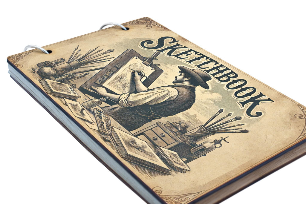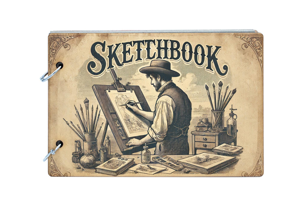 - Rustic Look: The wooden cover and muted colours give this sketchbook a historical theme and rustic appearance.