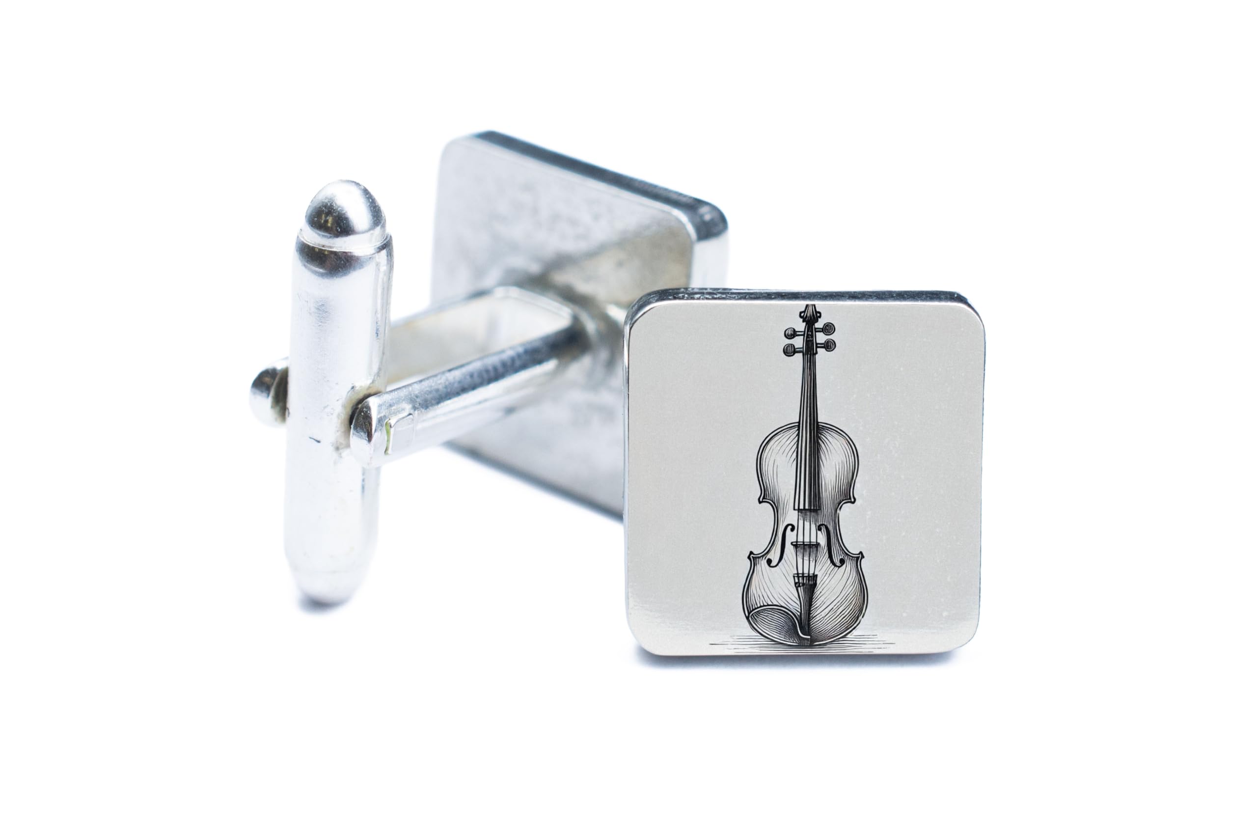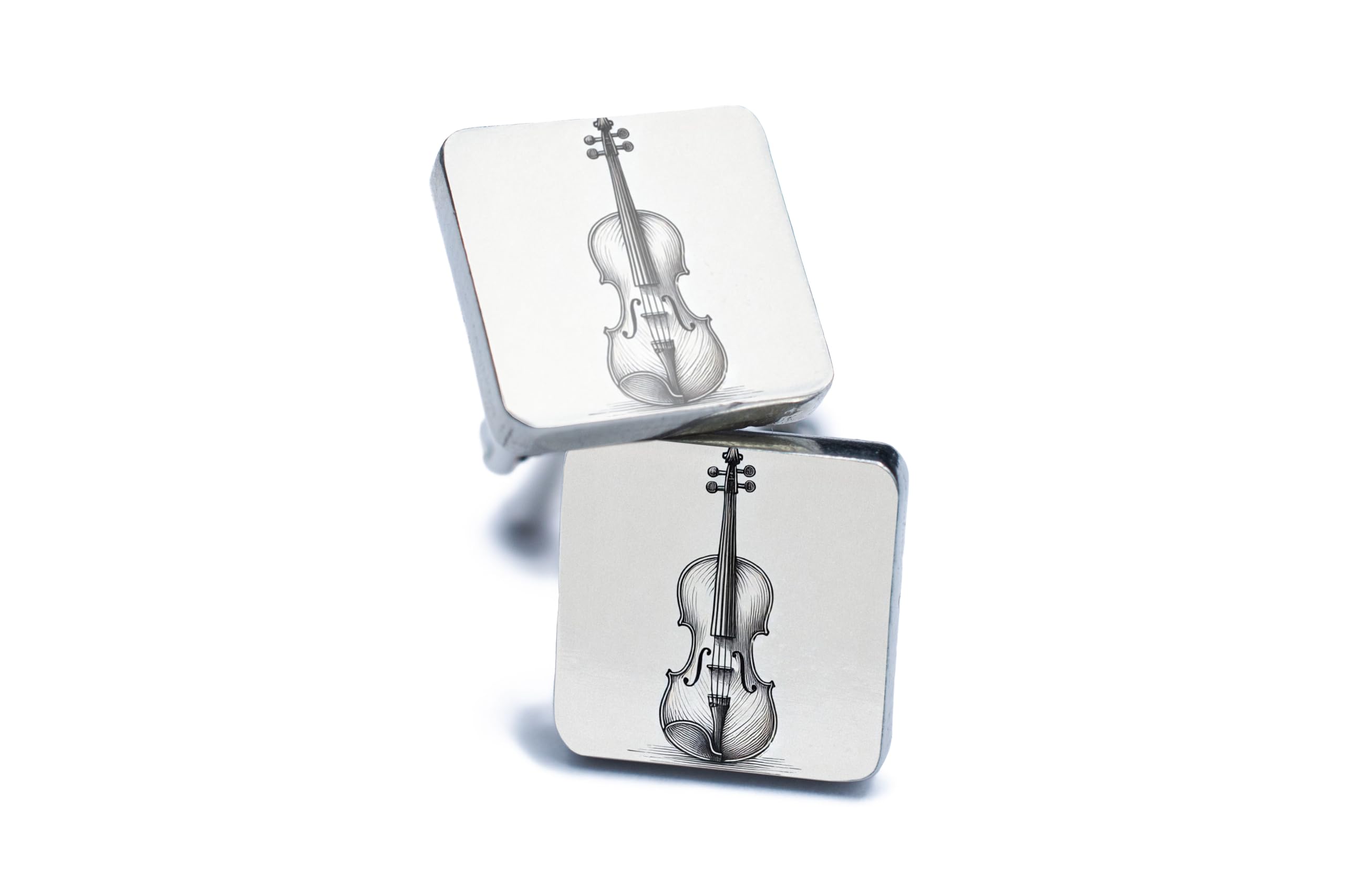 • Elegant Violin Design: Features a finely detailed sketch of a violin, making these cufflinks a timeless accessory for musicians and music enthusiasts.
