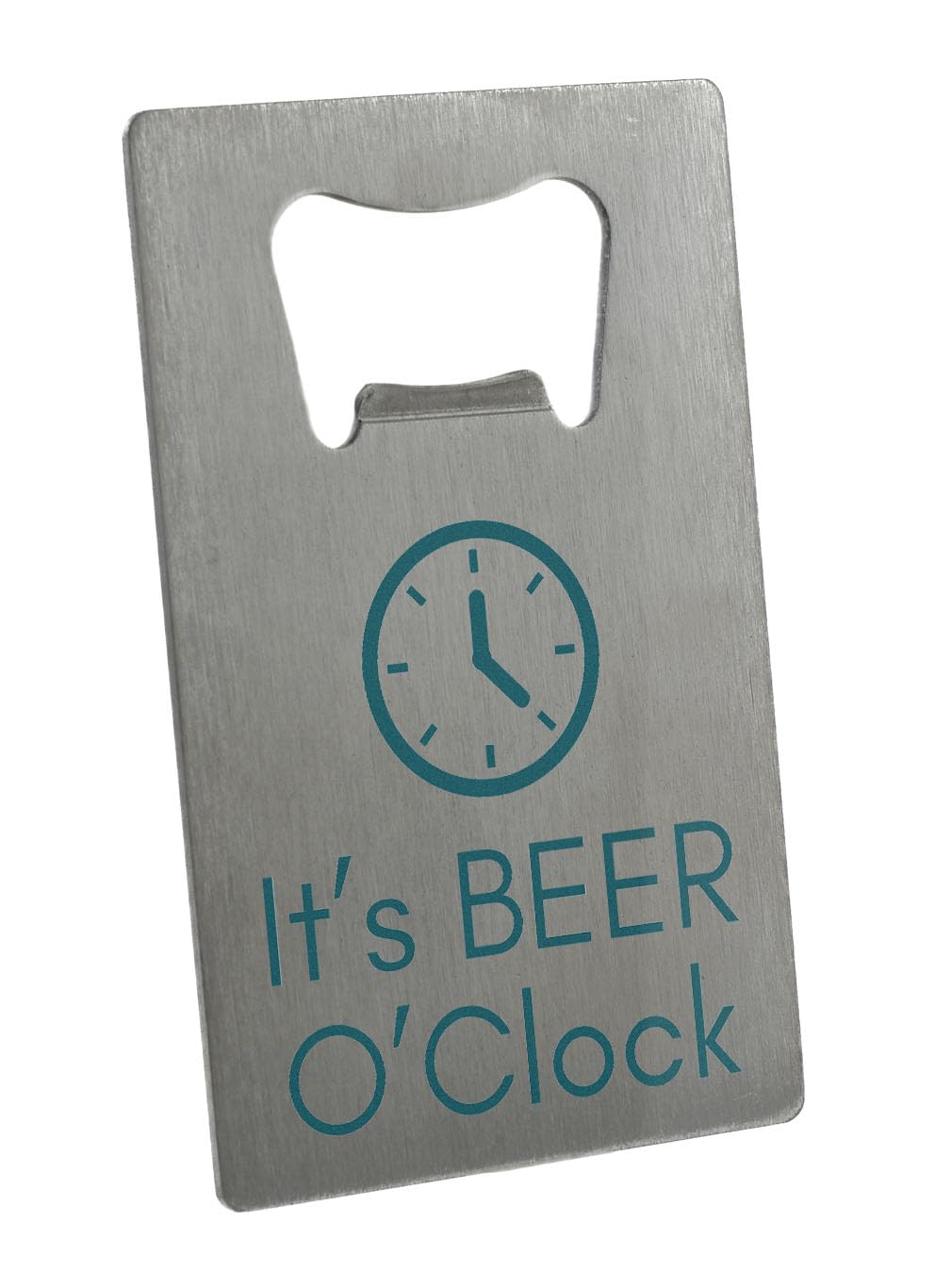 Introducing the Wallet Beer O'Clock Bottle Opener, the ultimate novelty credit card sized beer gift idea for dad! Made from quality brushed stainless steel, this wallet bottle opener is built to last and is perfect for any beer lover. It's beer o'clock somewhere, and with this sleek and simple text based design that reads 'it's beer o'clock', you'll always be prepared to crack open a cold one with ease. This dad gift is a must-have for any beer enthusiast, fitting conveniently in a wallet or pocket so you can enjoy a cold brew anytime, anywhere. Whether it's Father's Day, a birthday, Christmas, or just because, this credit card size bottle opener is a thoughtful and practical beer gift idea that will surely be appreciated.