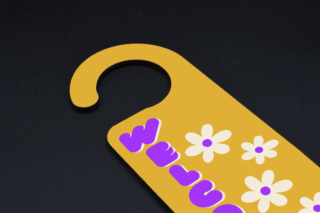 - Add a touch of retro charm to your home decor with this unique and eye-catching door hanger.
